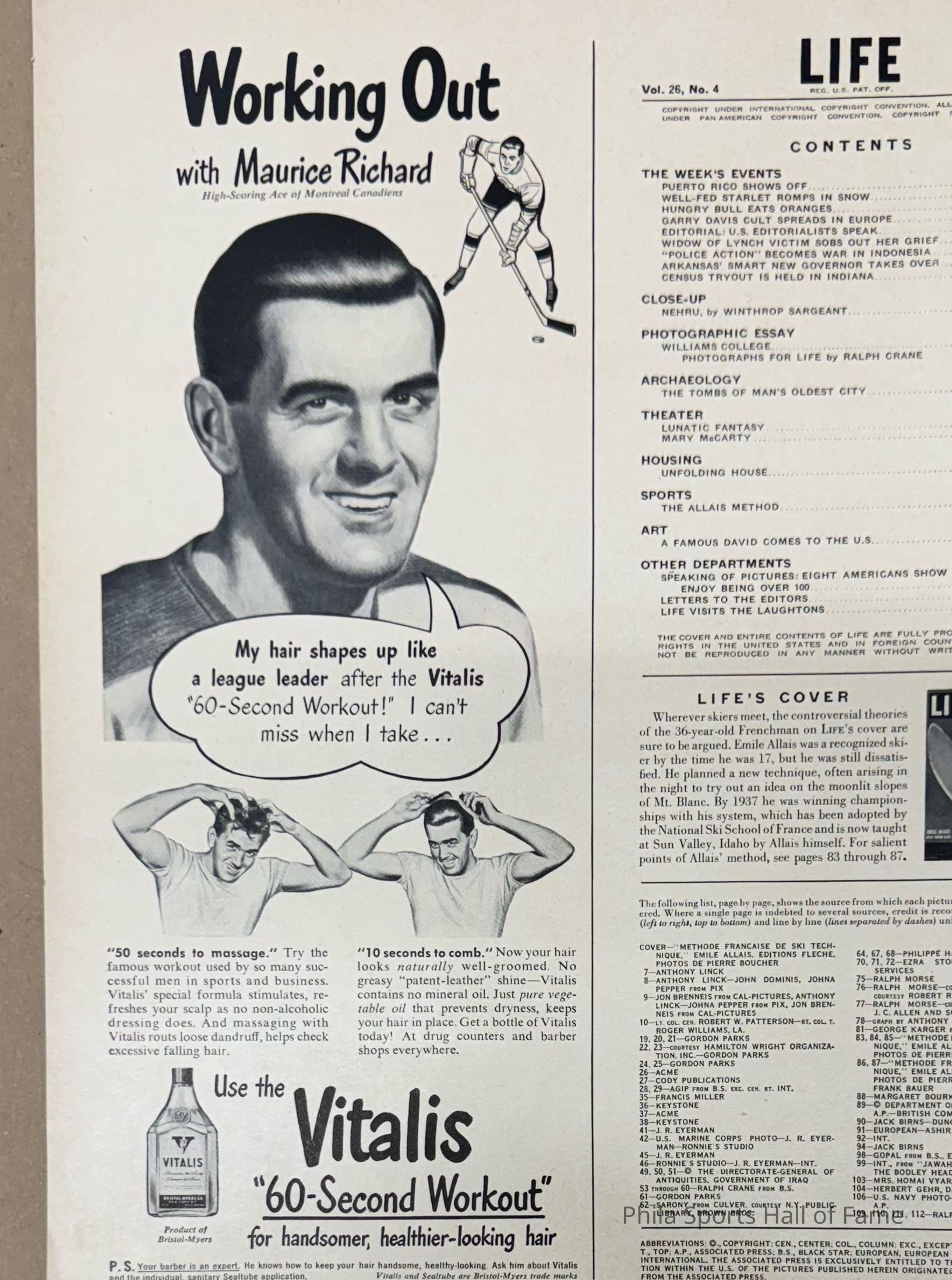 1949 Life Magazine Vitalis ad - Maurice Richard