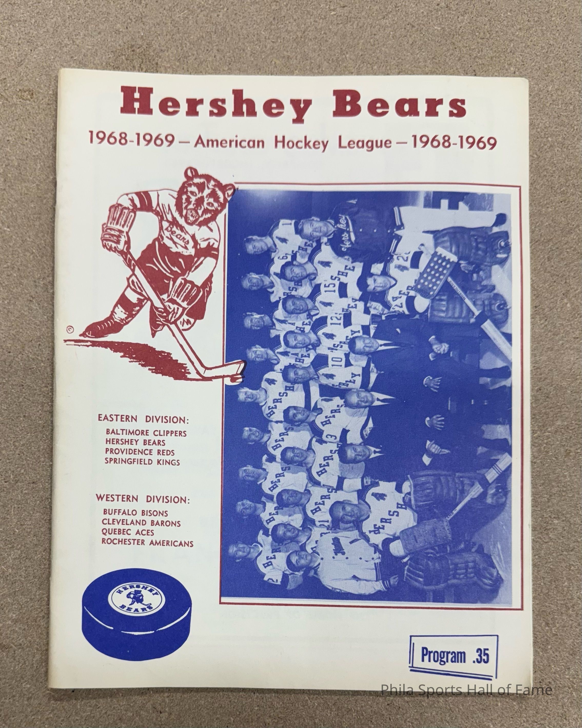 1968-69 Hershey Bears program ticket stub, newspaper article and Hershey Bar wrapper