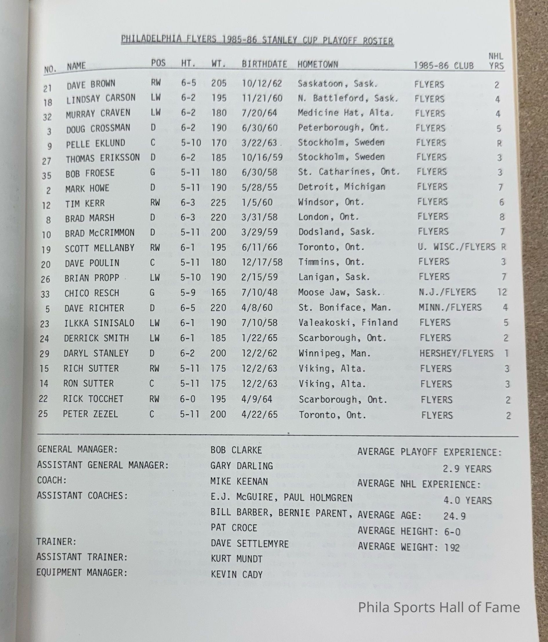 1986 Flyers Stanley Cup Playoff Guide