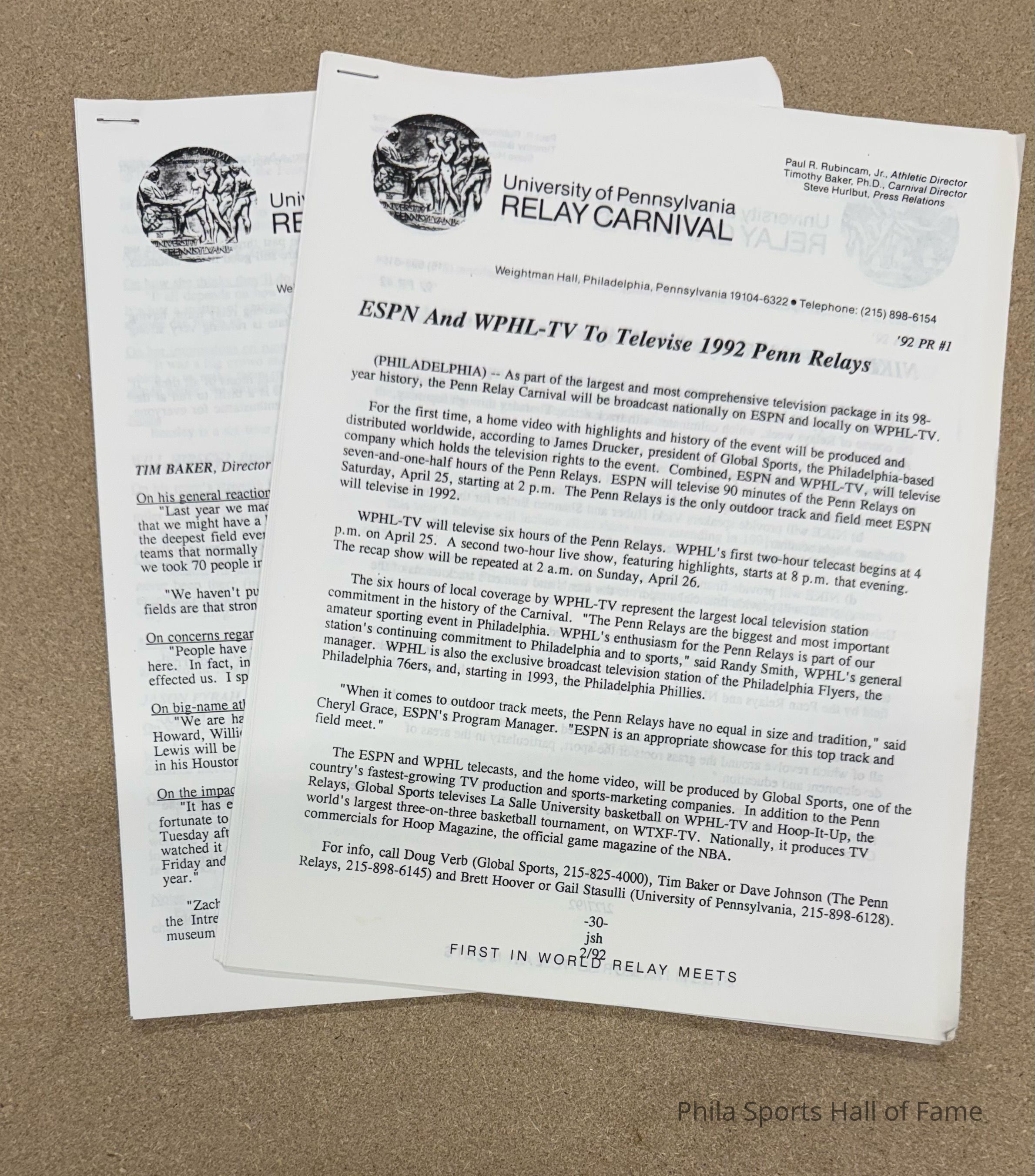 1992 Penn Relays press releases announcing TV coverage
