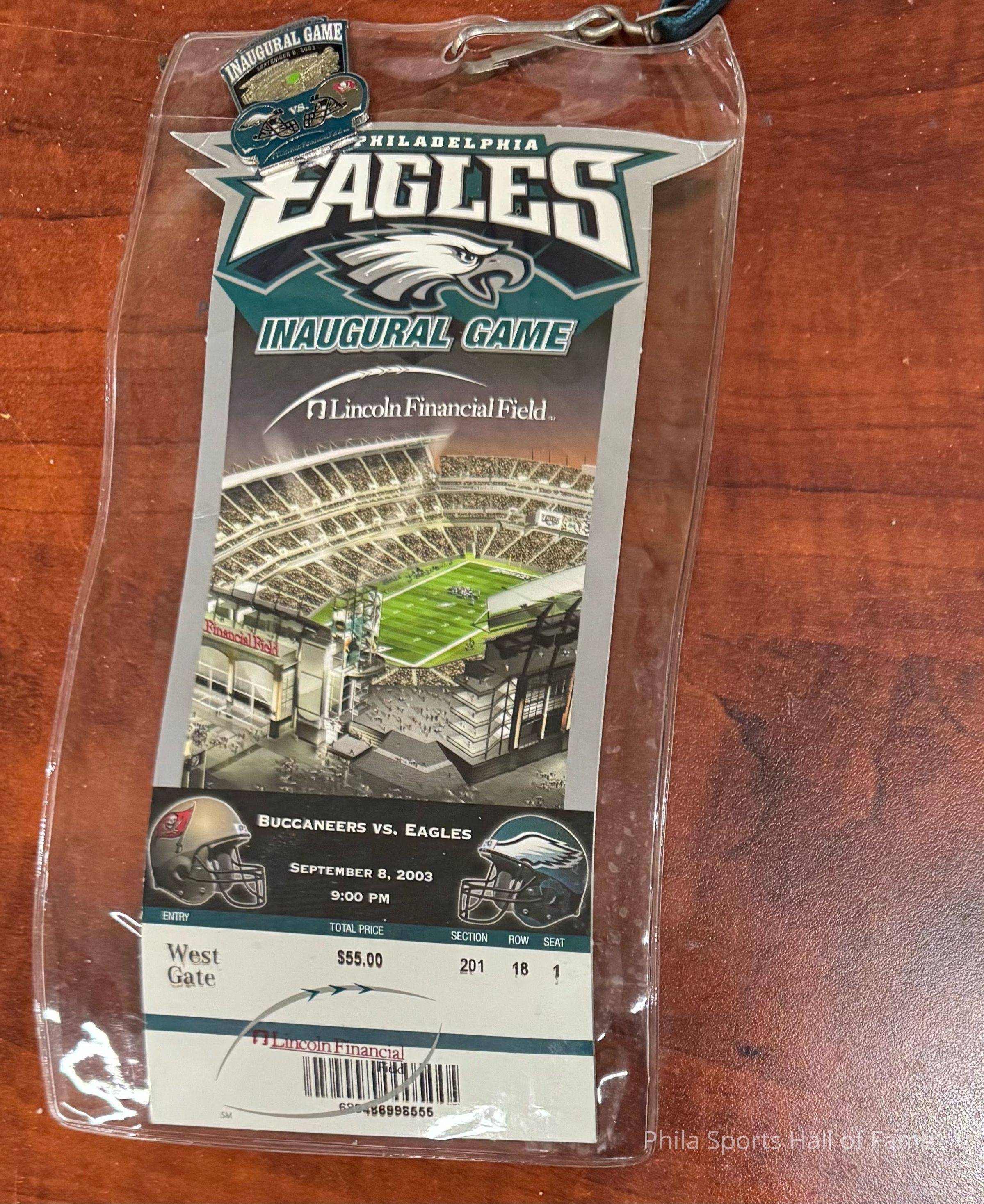 Ticket, lanyard & pin from Inaugural Game at Lincoln Financial Field, won by Tampa Bay 17-0Collection