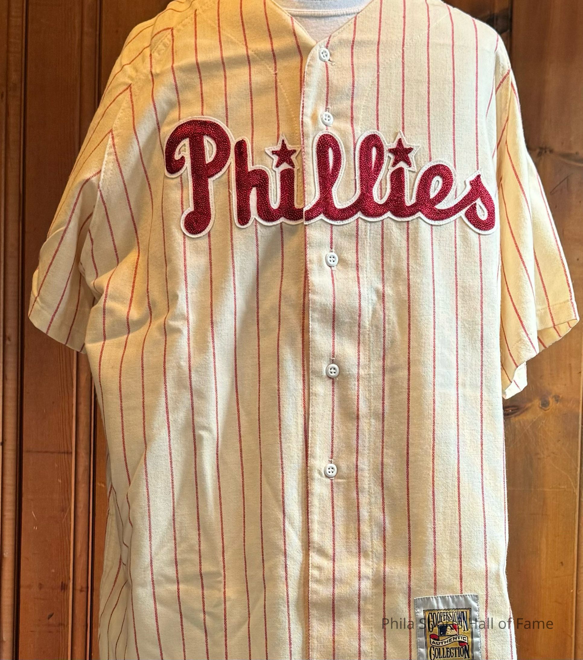1950s era Richie Ashburn Phillies #1 Jersey (authentic reproduction). Richie Ashburn played center field for the Phillies from 1948-1959. He is one of the all-time greats in Phillies history. He was a member of the "Whiz Kids" who won the 1950 NL pennant. He made 4 all-star games while playing in Philadelphia and led the league in batting twice. His #1 is retired by the Phillies and he is a member of the Baseball Hall of Fame. After he retired he joined the Phillies broadcast team in 1963 where he served until he passed away in 1997. He was part of the inaugural induction class of the Philadelphia Sports Hall of Fame.Collection