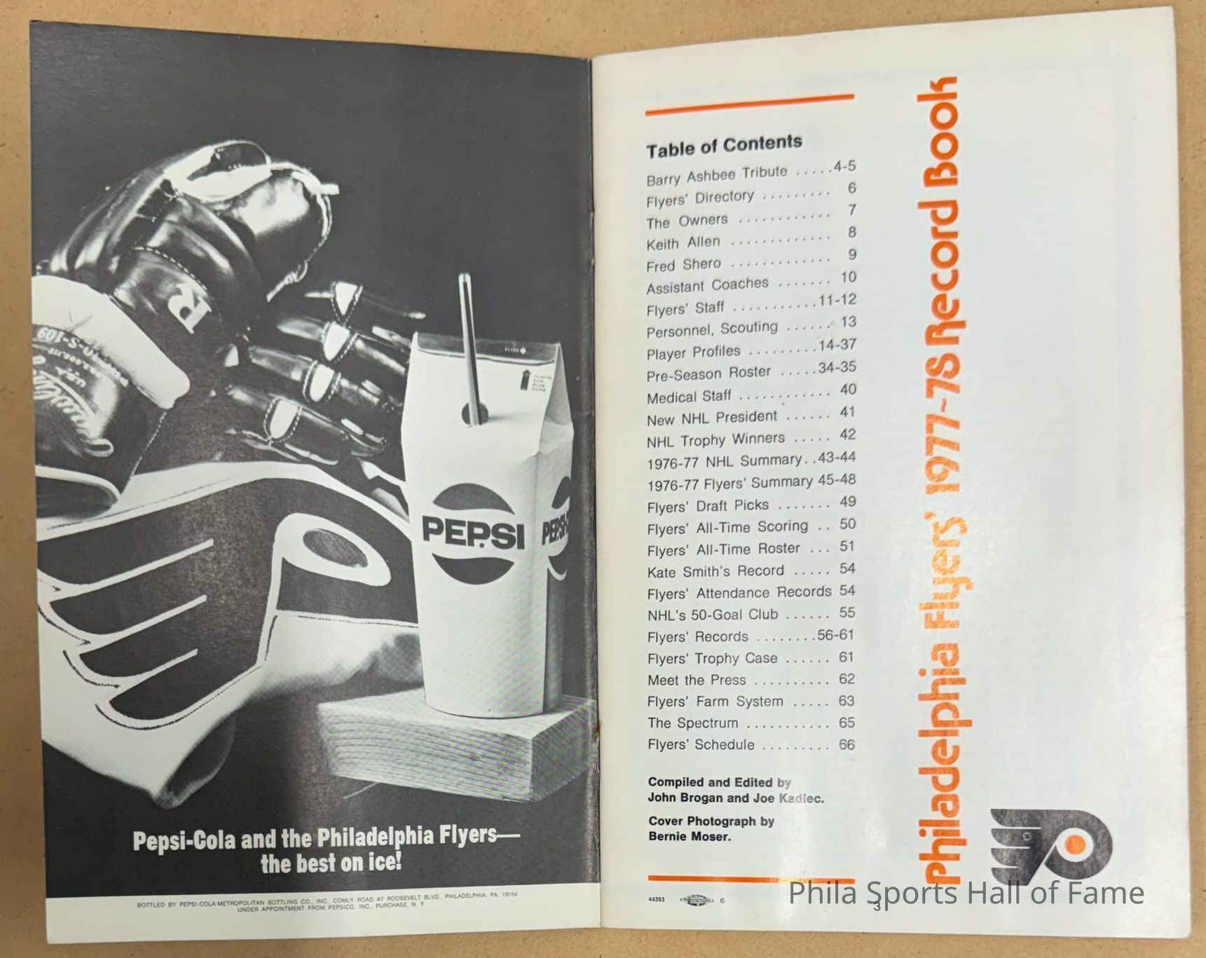 Cover and Table of Contents of the Flyers Record Book / Yearbook For the 1977-1978 Season