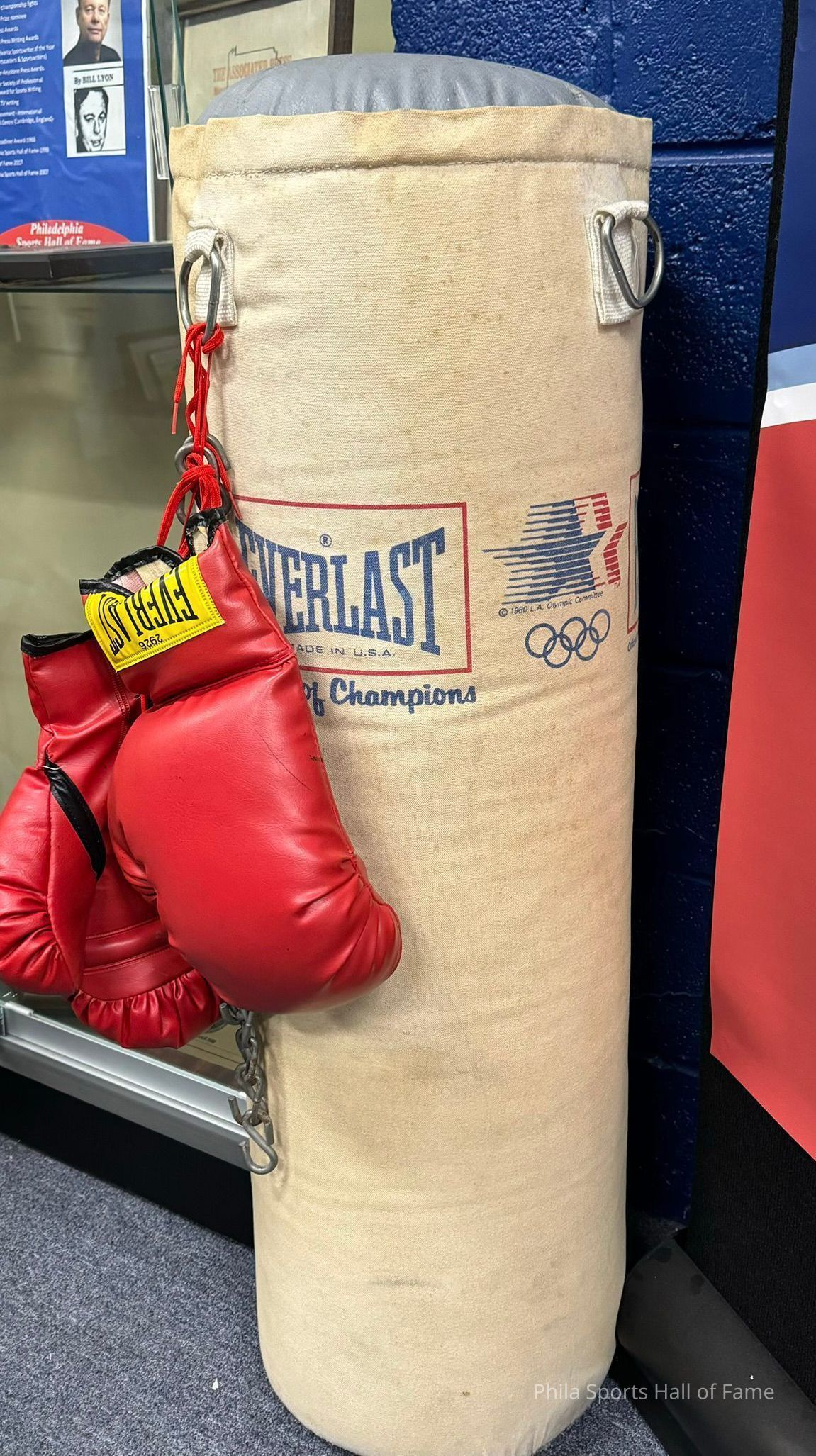 Heavy bag w/ 1980 Olympics logo and boxing gloves