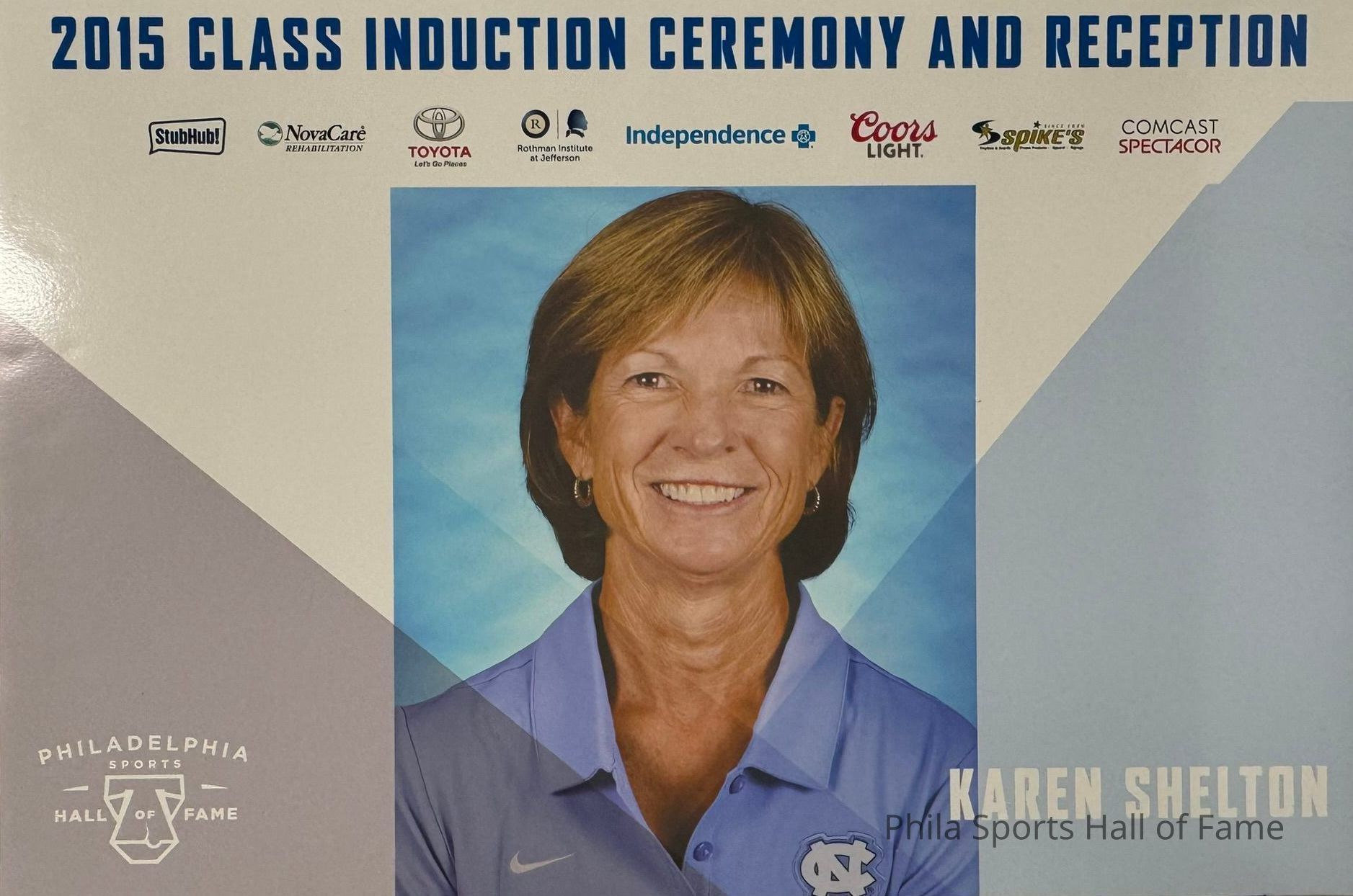 Mounted poster from the Philadelphia Sports Hall of Fame's 2015 Induction Ceremony with new Inductee Karen SheltonOther Names