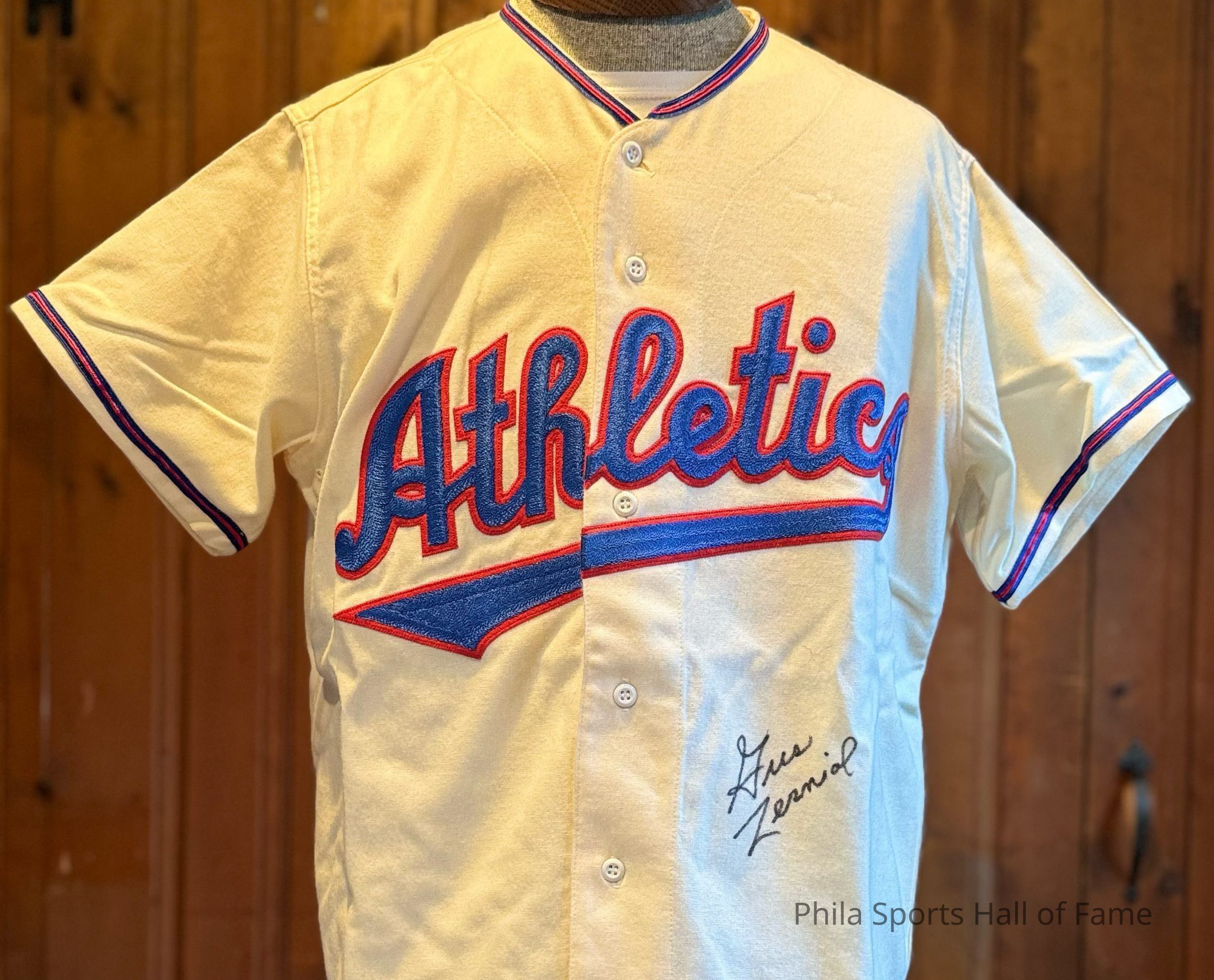 Gus Zerniel signed 1950s era Philadelphia Athletics #19 Jerseyauthentic reproduction)Made/Created
