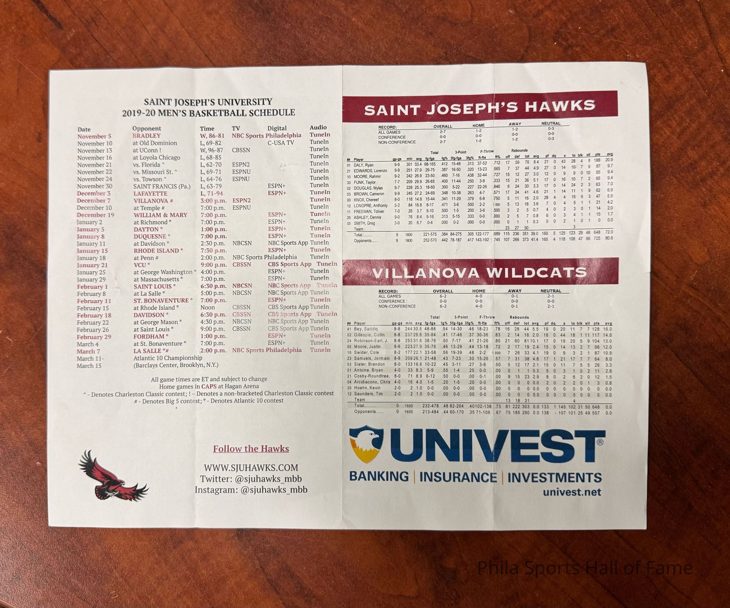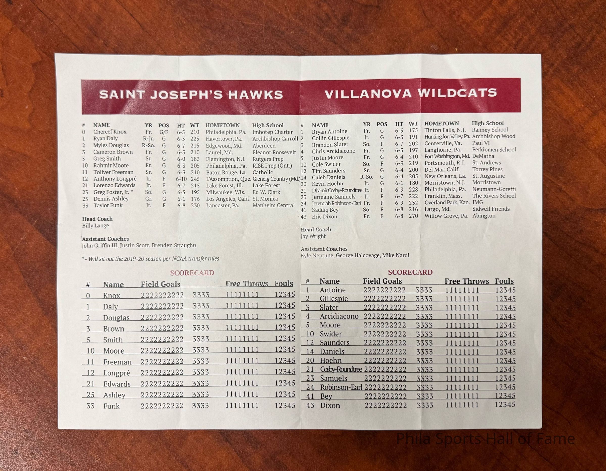 St. Joseph's - Villanova practice game scorecard & 2019-20 season scheduleCollection