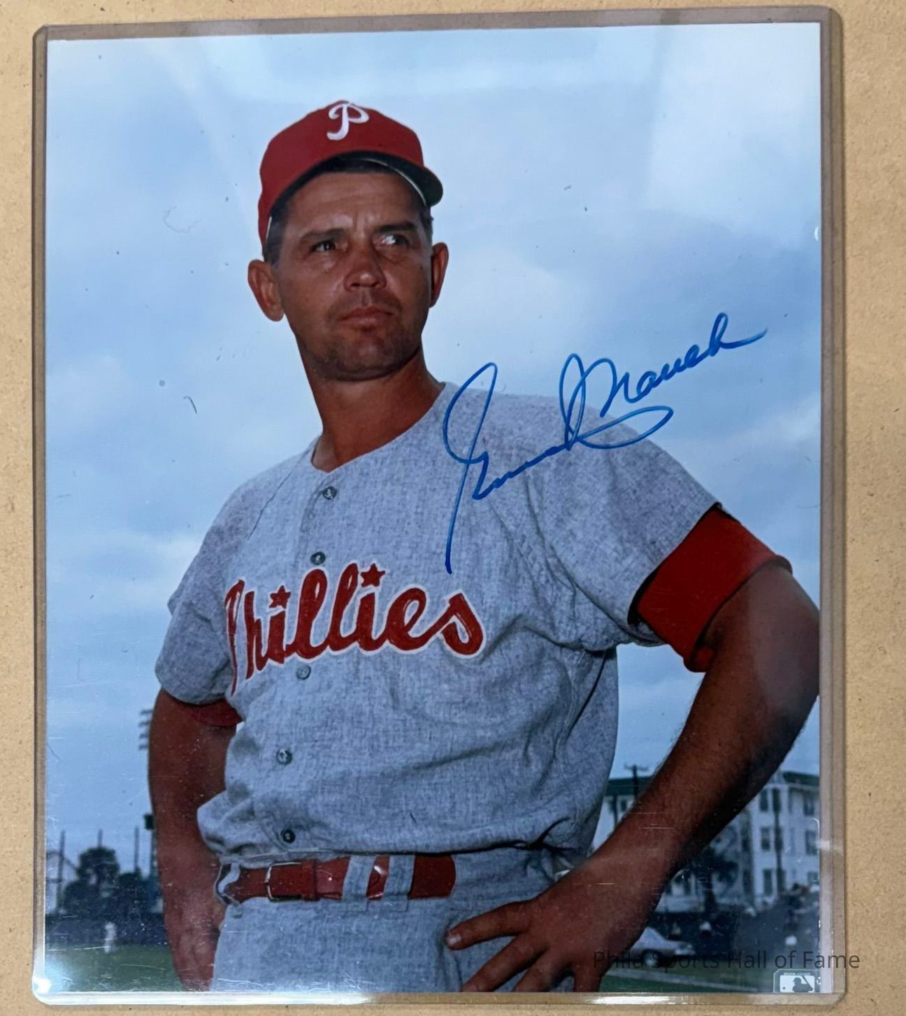 Signed Gene Mauch Photo. Gene Mauch managed the Phillies from 1960-1968 winning 646 games which is second in Phillies history behind Charlie Manuel (780). The 1964 Phillies were in first place by 6 1/2 games on September 20. They would lose 10 of their next 12 blowing the lead and allowing the Cardinals to win the pennant. This became known as "The Phold".Other Names