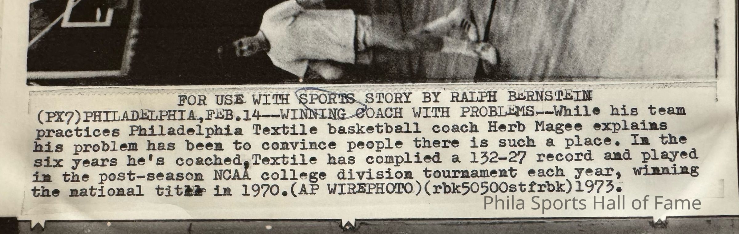 Associated Press wire photo of coach Herb Magee for use with story by Ralph BernsteinPhotograph Details
