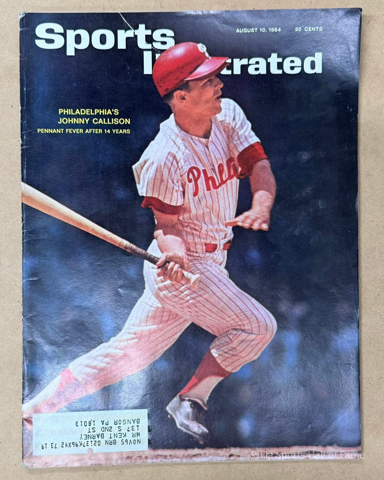 Sports Illustrated - August 10, 1964. Johnny Callison on the cover. In 1964 Callison was an all-star, winning MVP with a walk-off game winning homerun. He was runner up for the N.L. MVP. 1964 Phillies were in first place by 6 1/2 games on September 20. They would lose 10 of their next 12 blowing the lead and allowing the Cardinals to win the pennant. This became known as "The Phold".Publication Details