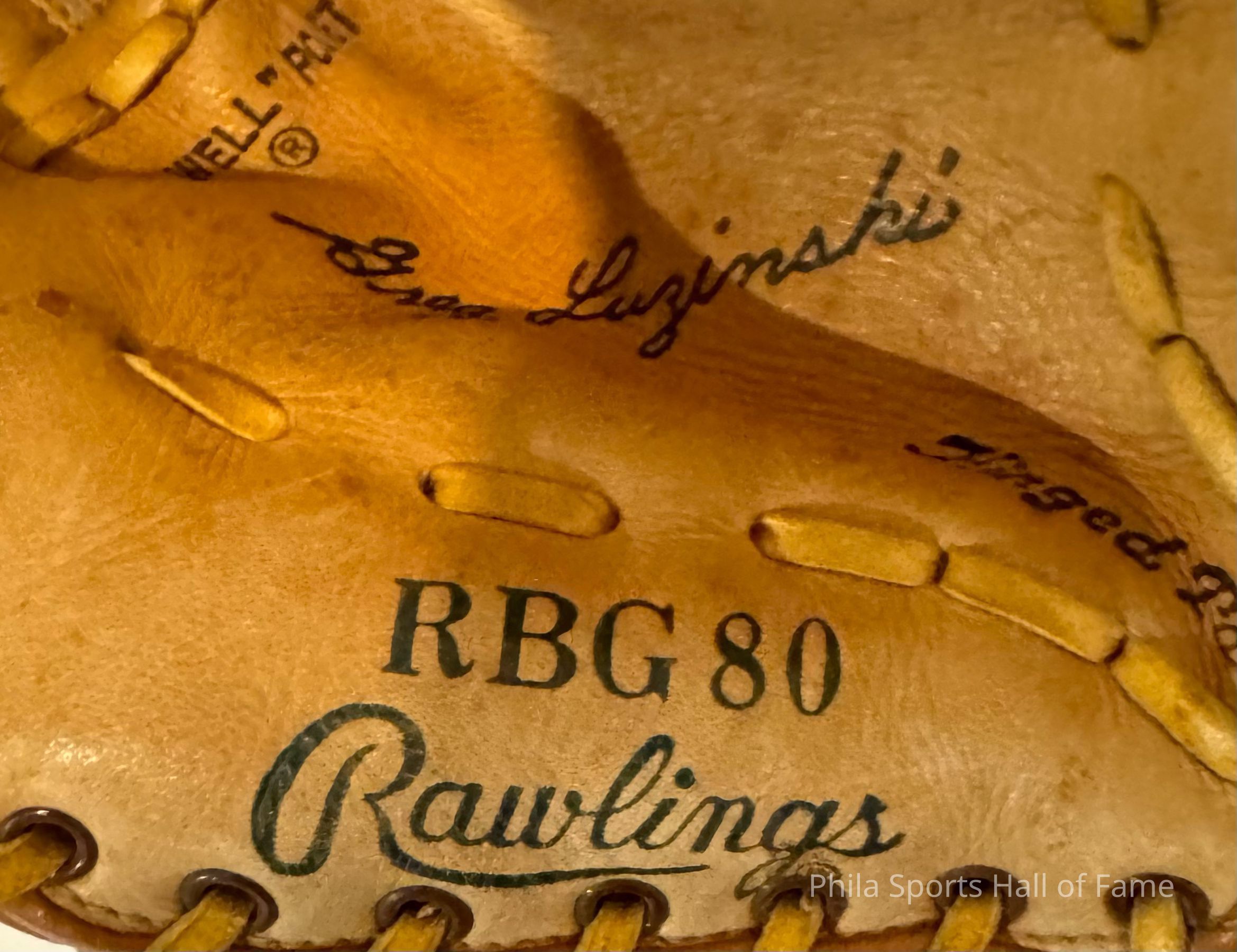 Greg Luzinksi model glove. Luzinski played left field for the Phillies from 1970-1980. "The Bull" was a 4 time all-star who helped lead the Phillies to the 1980 World Championship. He was the NL RBI leader in 1975. He won the Roberto Clemente Award in 1978 which is awarded to the MLB player who