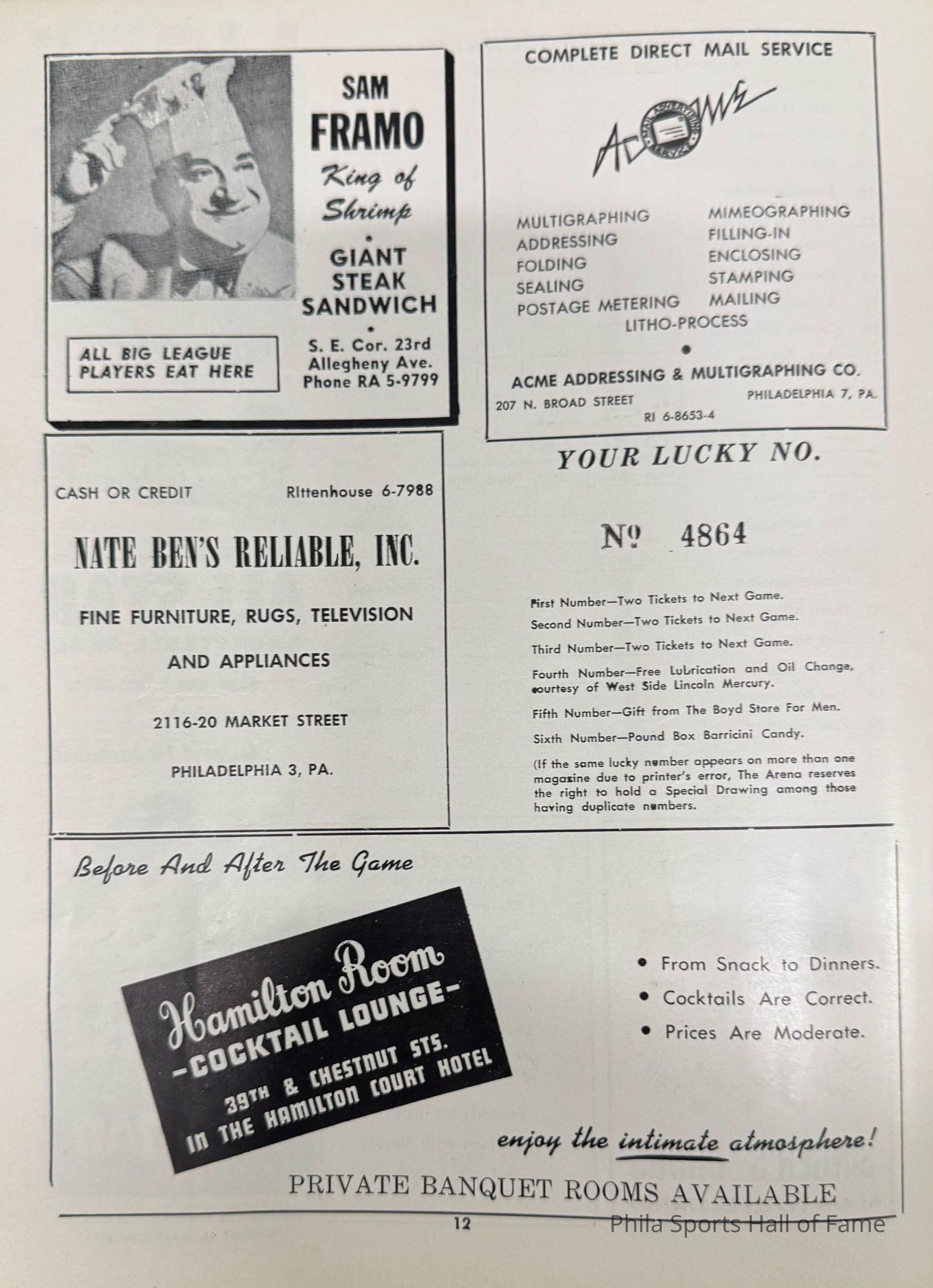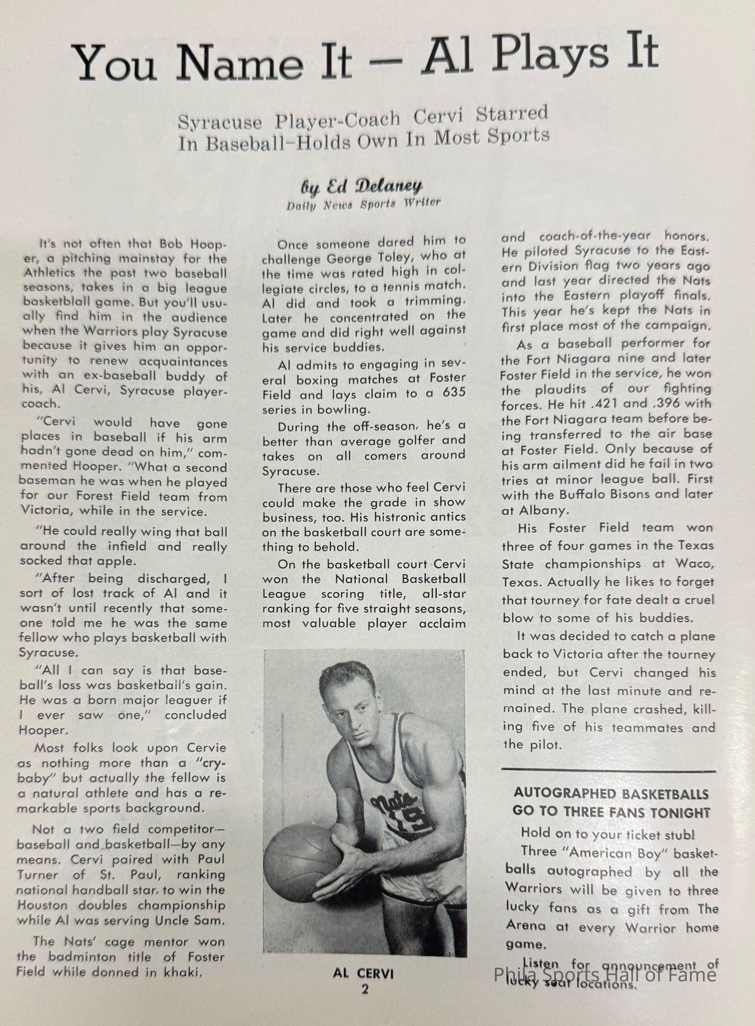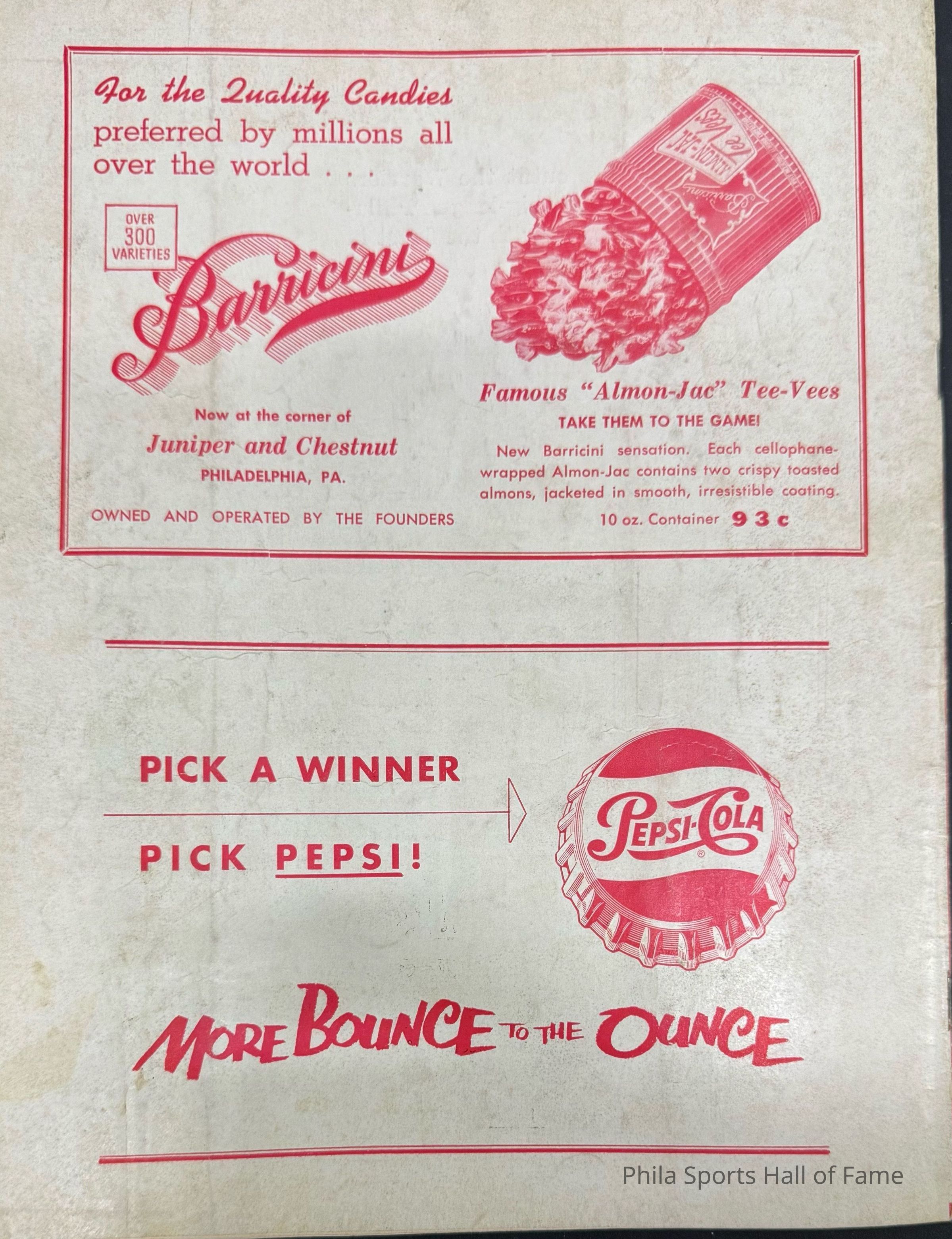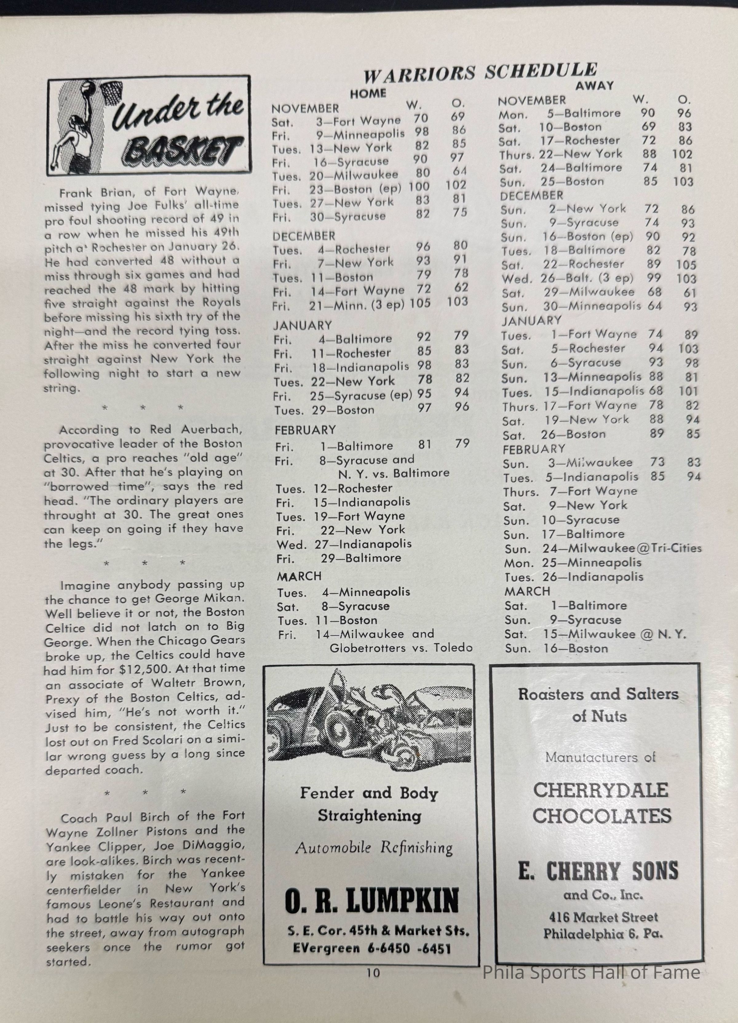1952 Philadelphia Warriors vs Syracuse Nationals; Double-header with NY K nicks vs Baltimore BulletsDescription