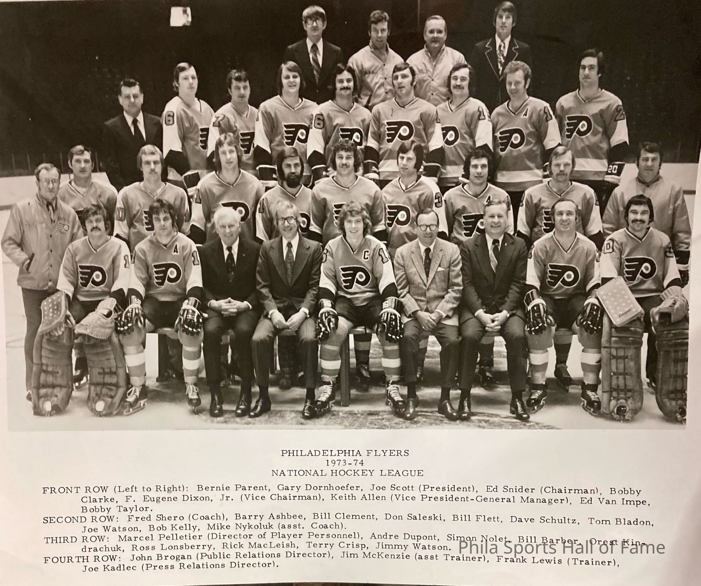 Team photo of the 1973-1974 Philadelphia FlyersPhotograph Details