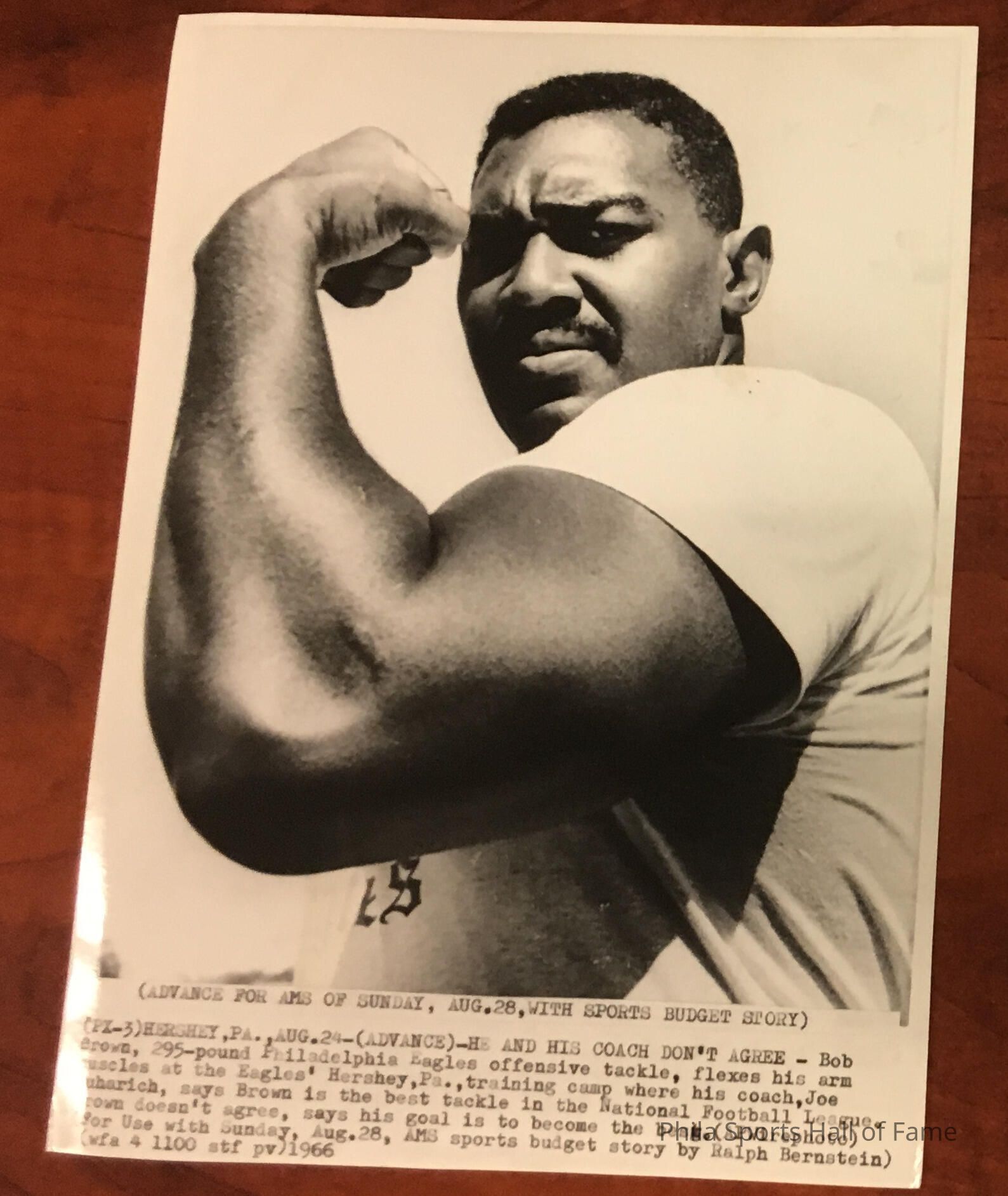 1966 Press photo of Eagles tackle Bob Brown at training camp in Hershey, PAPhotograph Details