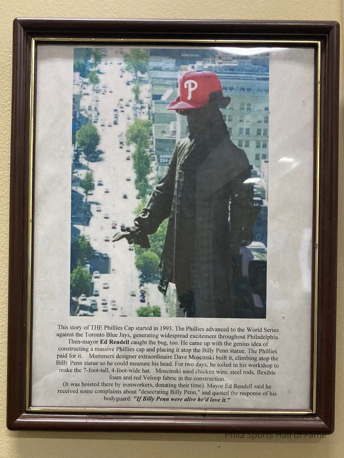 Giant Phillies hat that was put on top of the William Penn Statue on top of Philadelphia's City Hall during the 1993 World Series. The Phillies lost to the Toronto Blue Jays 4 games to 2.Other Names