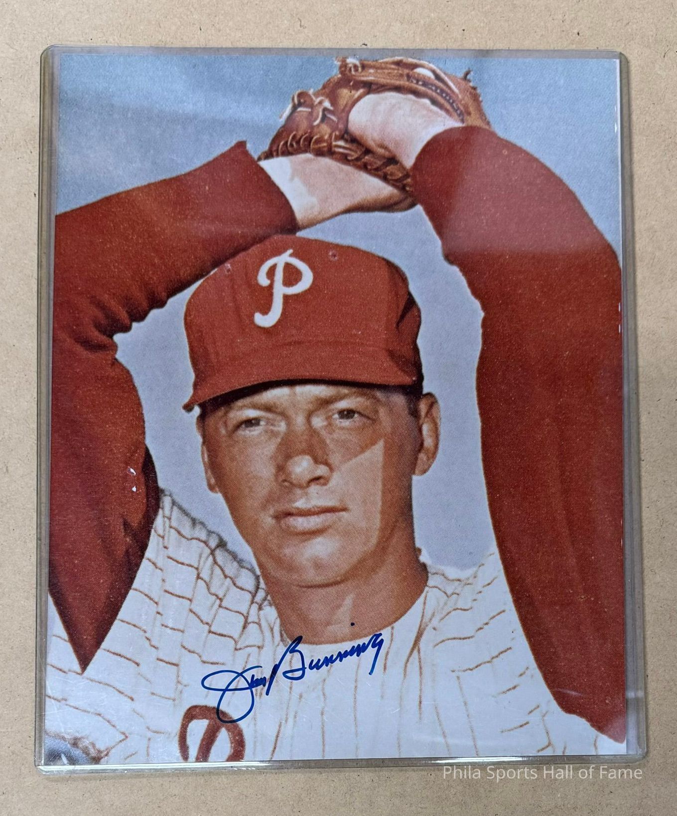 Jim Bunning Signed Photo. Jim Bunning picted for the Phillies from 1964-1967 and 1970-1971 winning 89 games. He made 2 All-Star games while with the Phillies. He pitched a perfect game on Father's Day in 1964. He is a Hall of Famer and his #14 is retired by the Phillies.Other Names