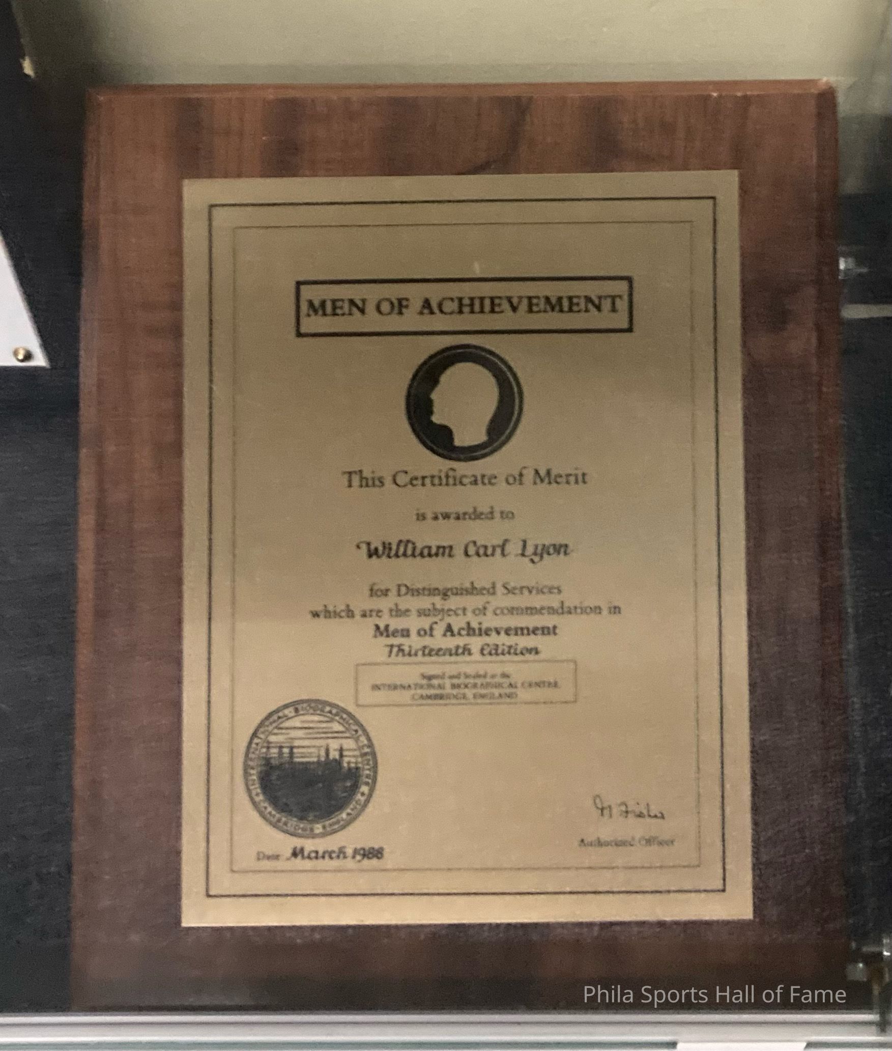 Bill Lyon - Men of Achievement - Certificate of Merit