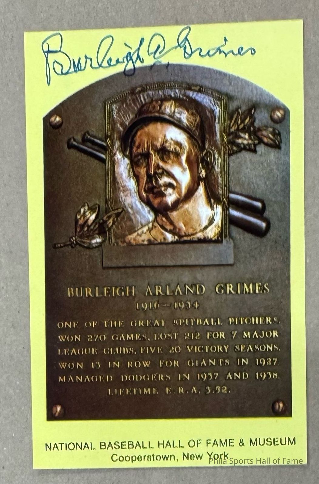 Burleigh Grimes signed Baseball Hall of Fame postcard