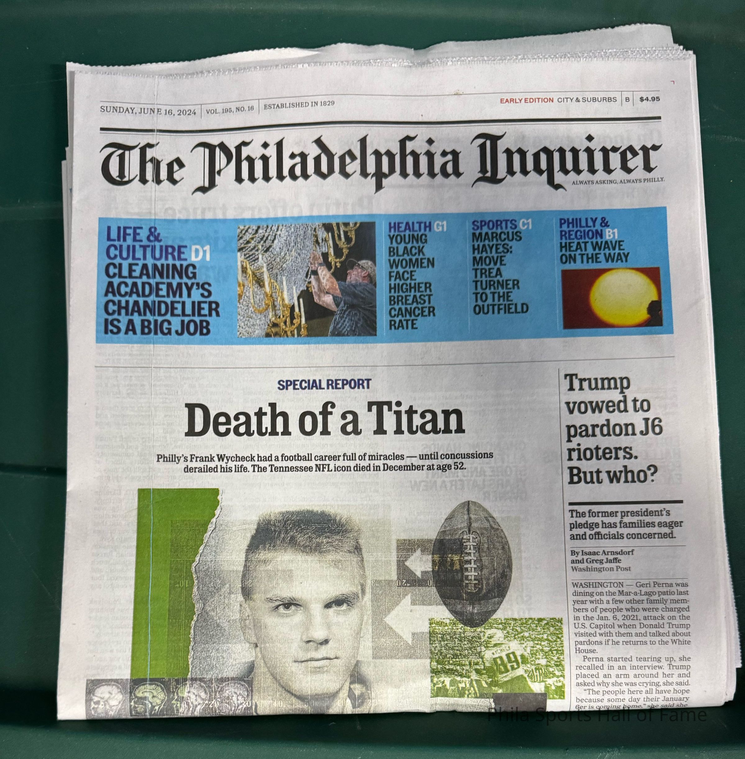 Inquirer-June 16, 2024 - Article on death of Frank Wychek