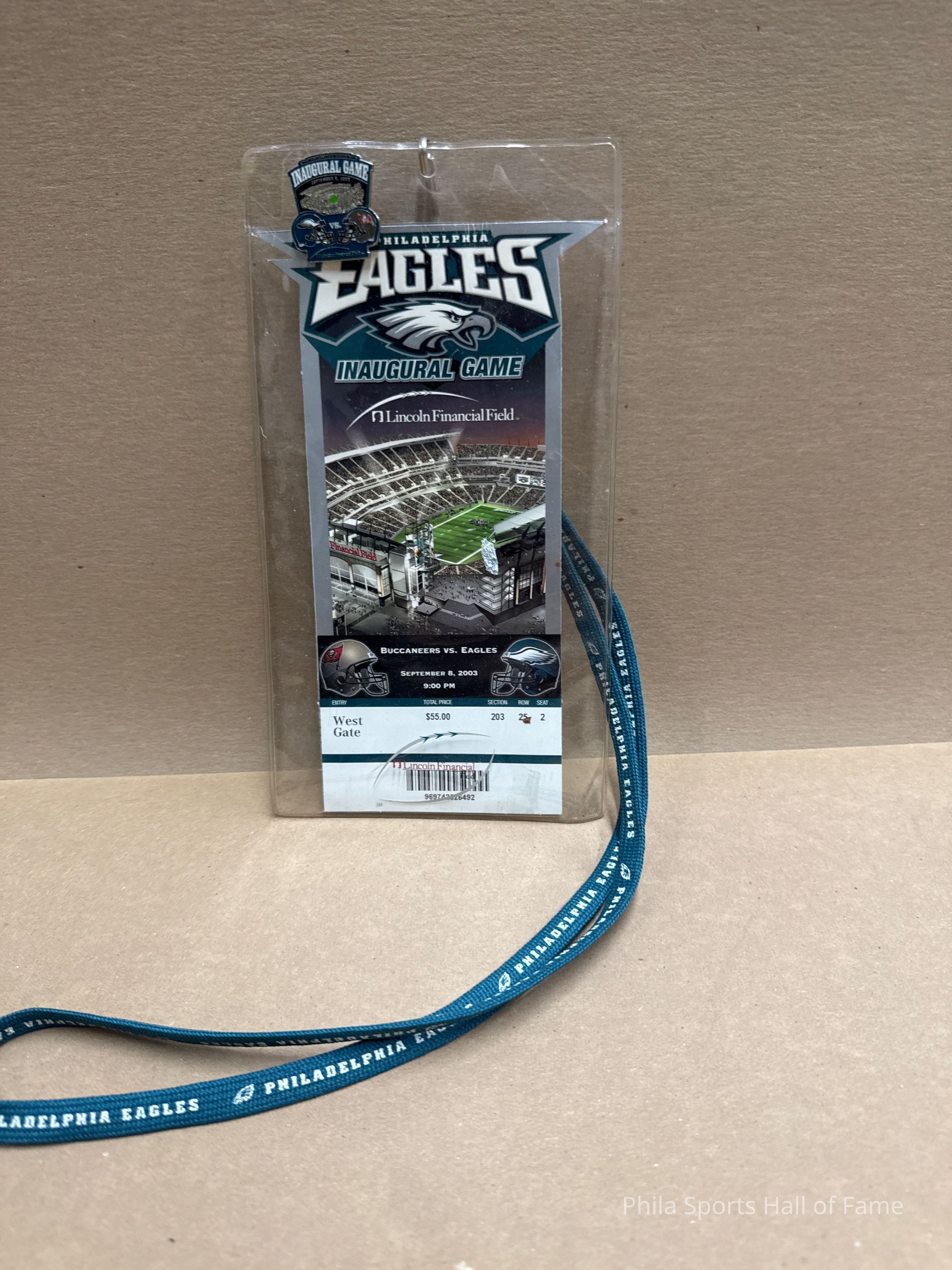 Game ticket, ticket holder, lanyard & pin from Inaugural game at Lincoln Financial FieldCollection