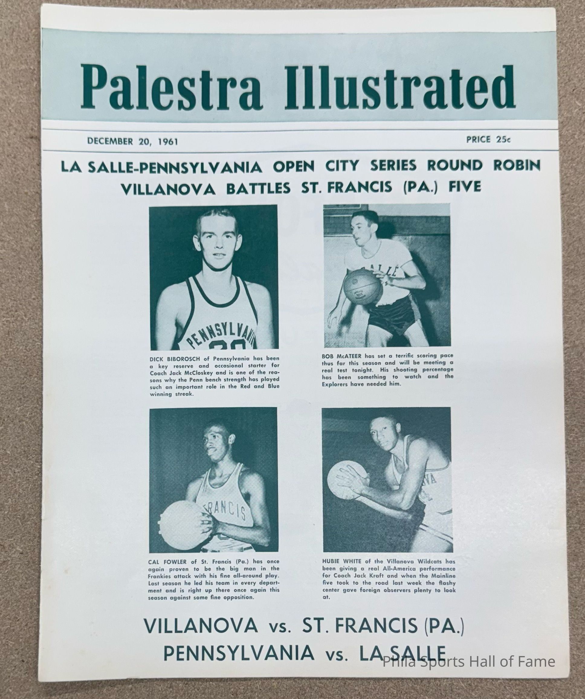 Palestra Illustrated game day program - Dec 20, 1961