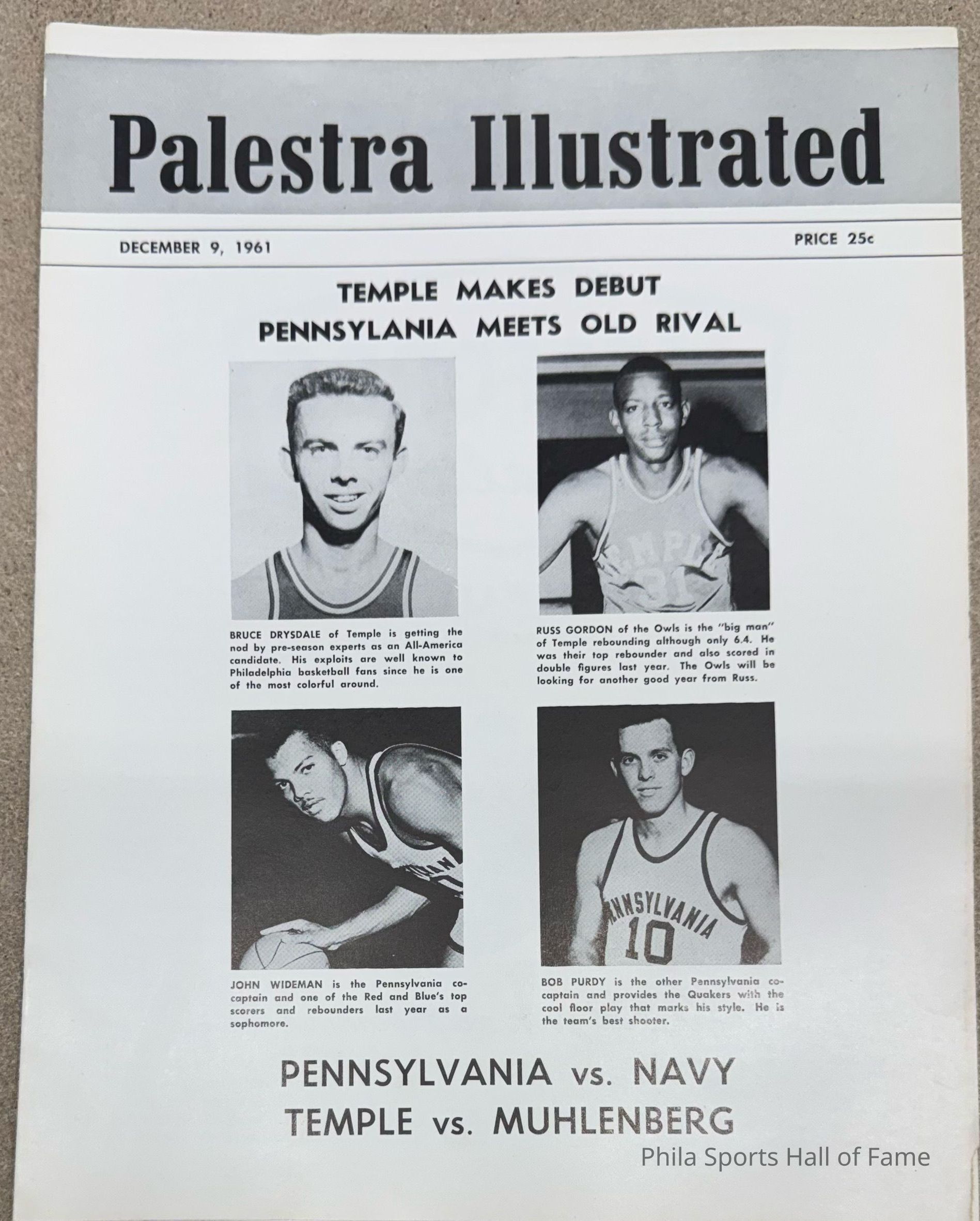 Palestra Illustrated game day program - Dec 9, 1961