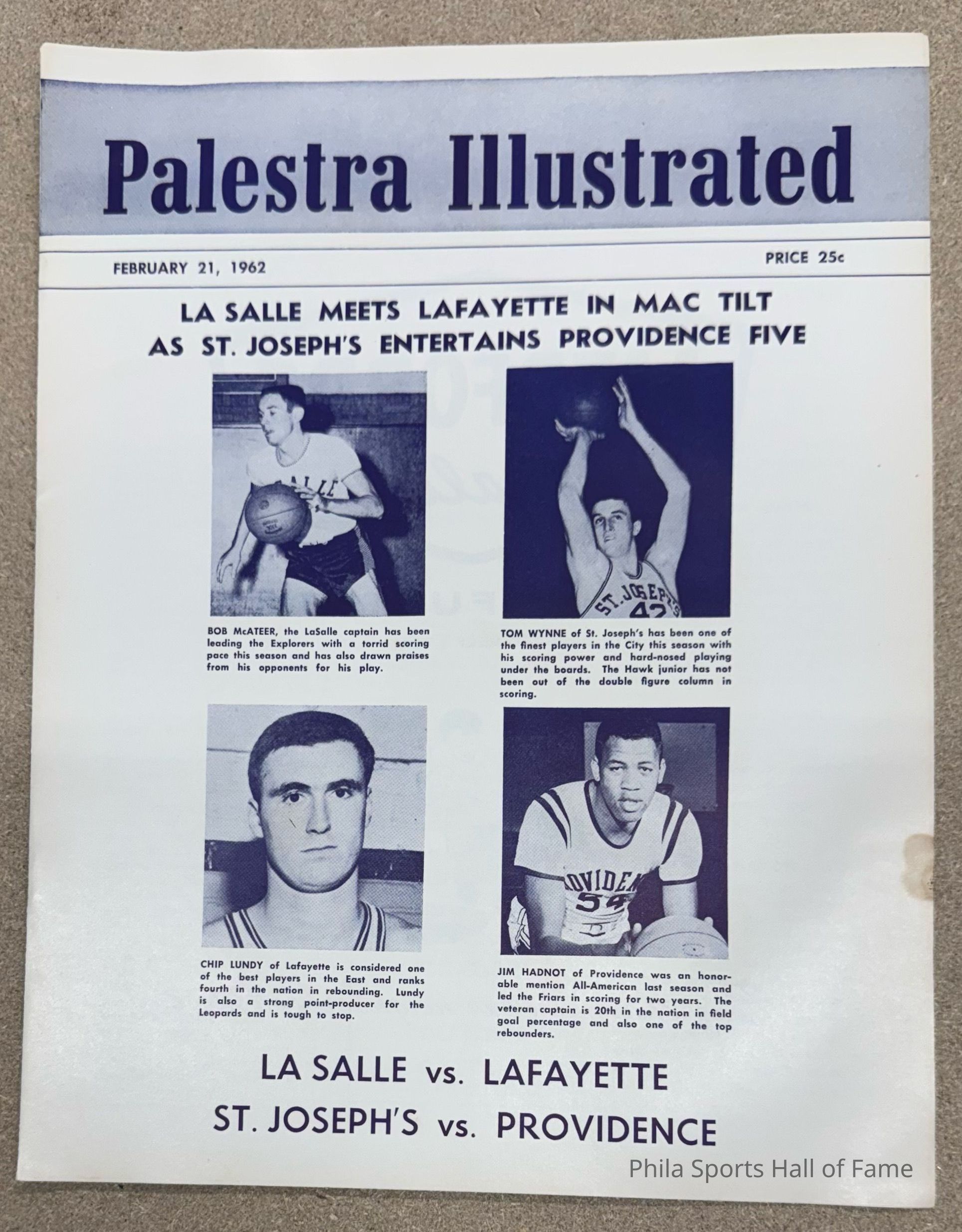 Palestra Illustrated game day program - Feb 21, 1962