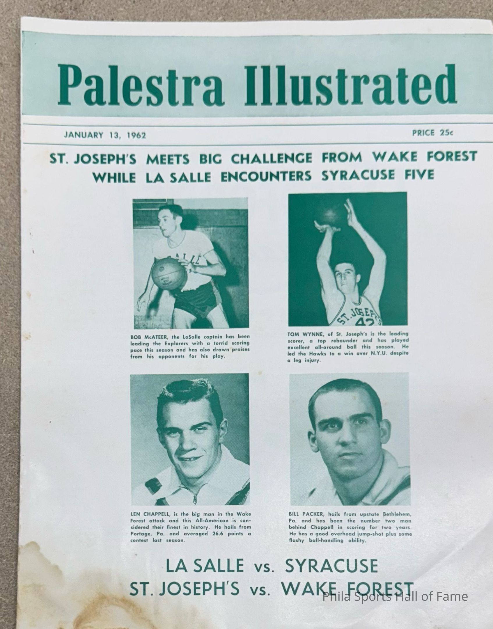 Palestra Illustrated game day program - Jan 13, 1962
