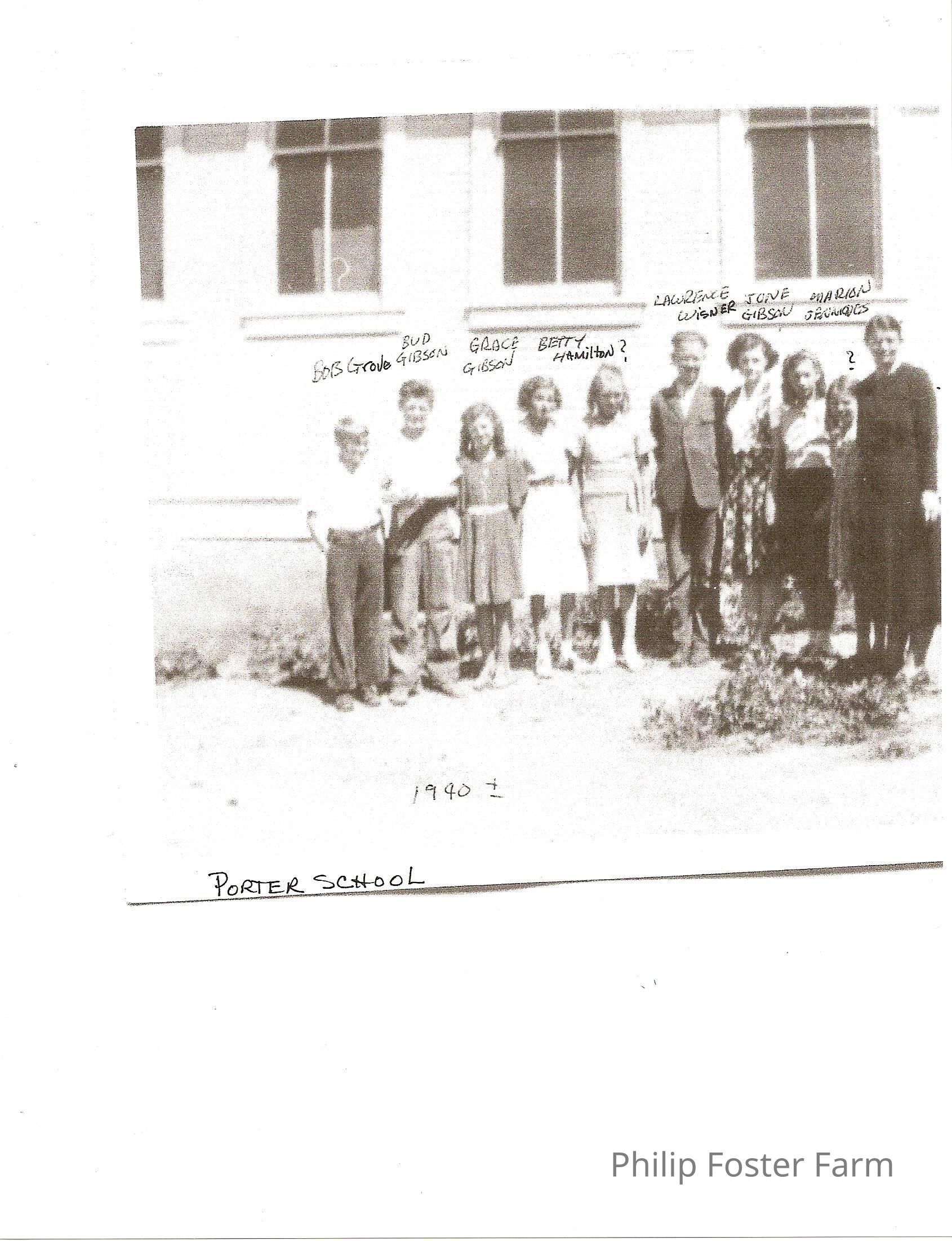 Names of students written from left to right: Bob Grove, Bud Gibson, Grace Gibson, Betty Hamilton?, Lawrence Wisner, Jone Gibson, Marion Jenniqes (spelling ?)