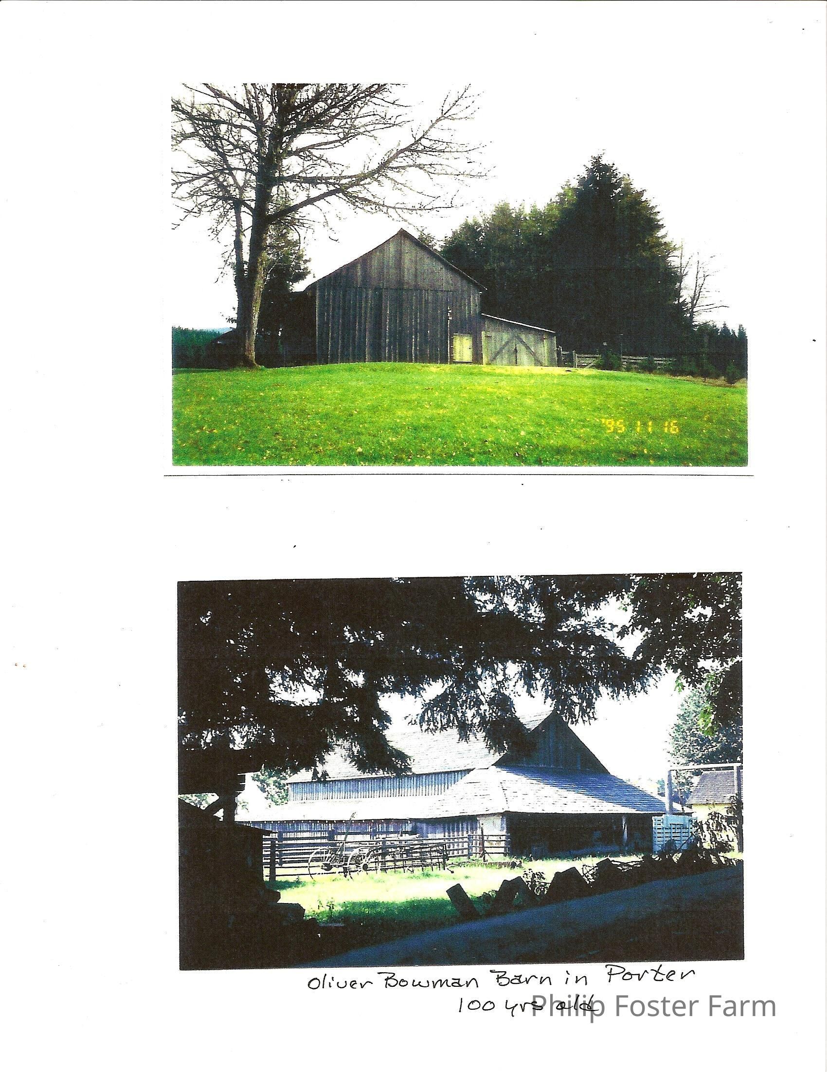 Scan of two photographs of Oliver Bowman's 100-year-old barn in Porter.