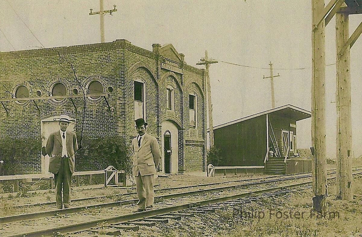 Scan of photograph of Eagle Creek train substation and depot.