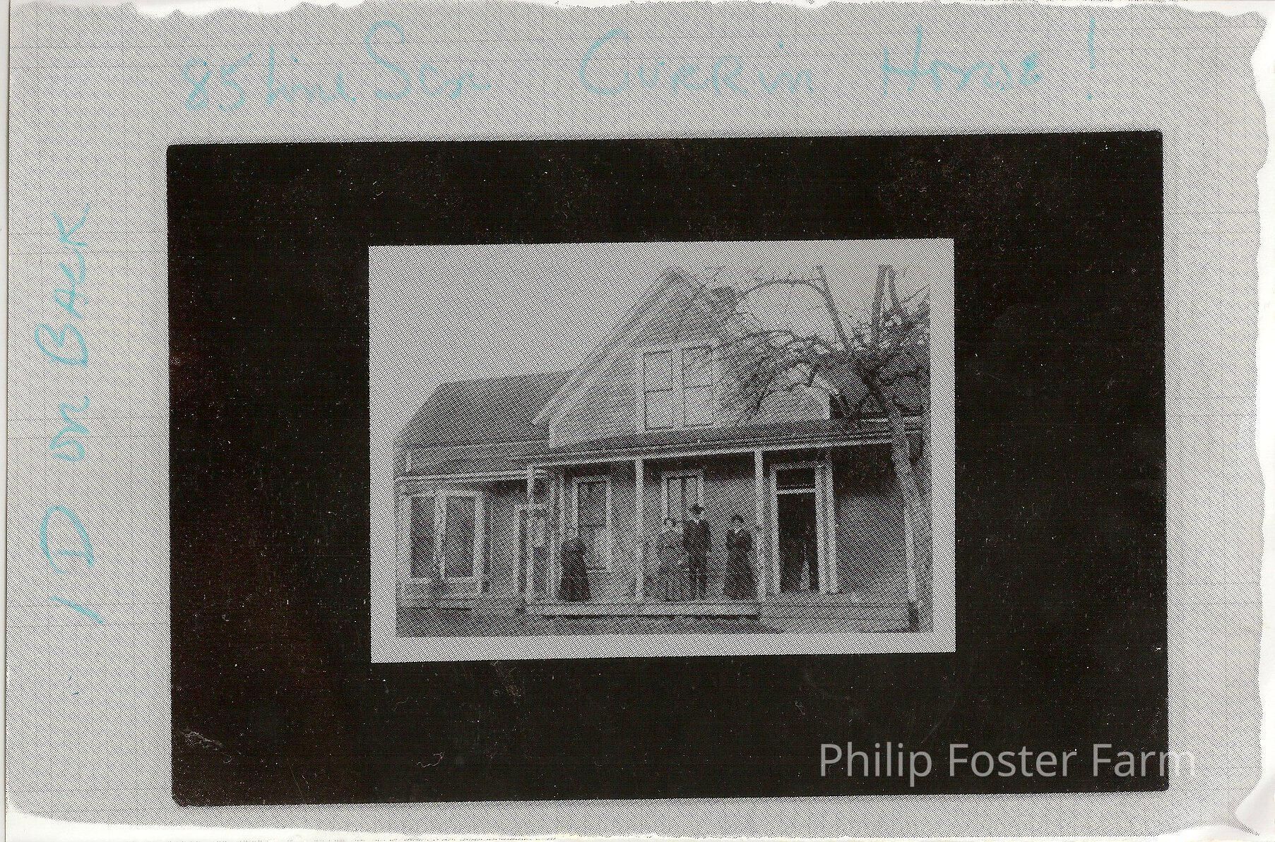 Photo of Robert H. Currin house in Currinsville. Black and white picture of house with 4 people on the porch.