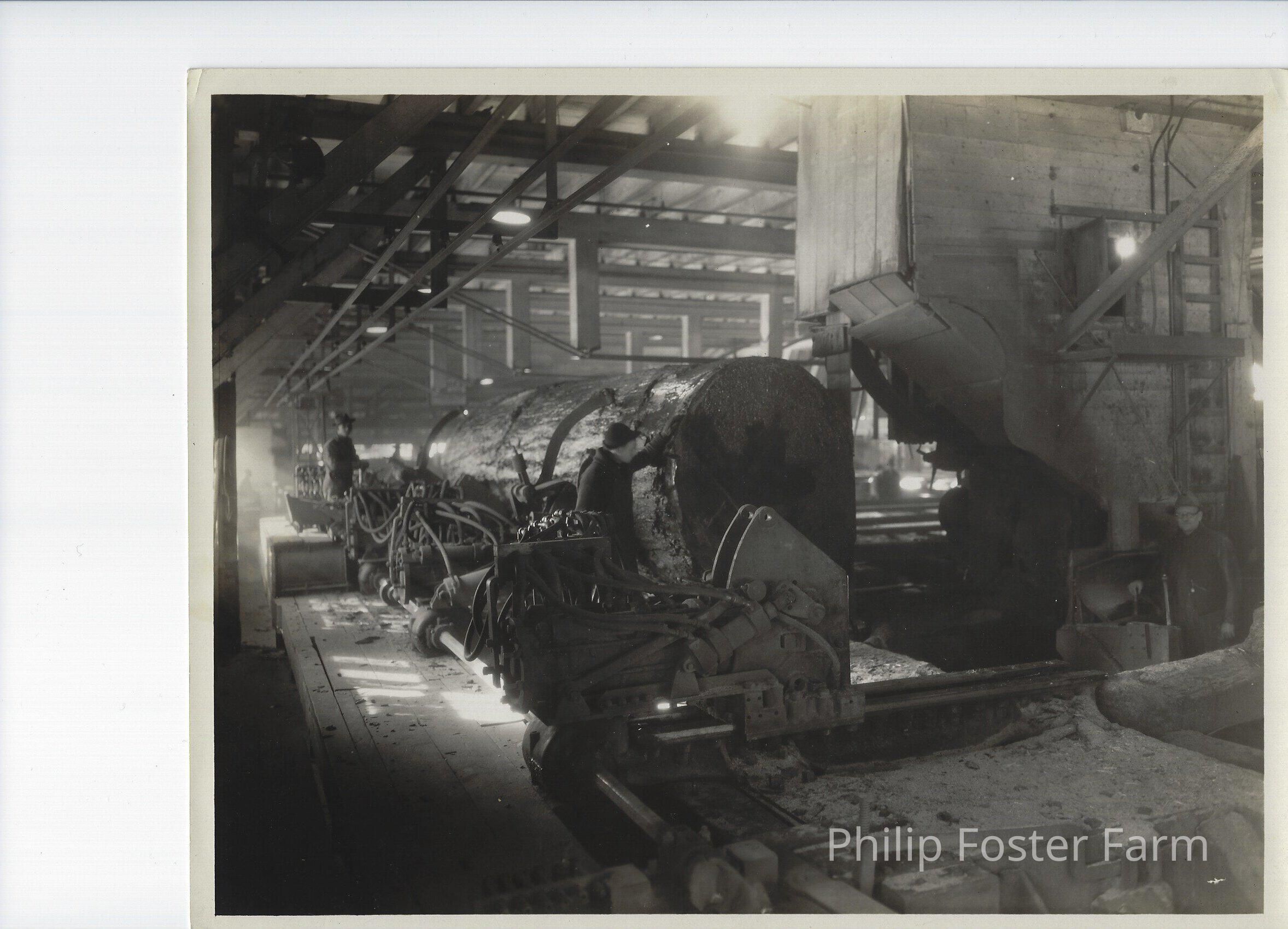 Cutting a log at a lumber mill near Estacada