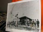 " The Eagle Creek R.R. station 1884. E.L. (Roy) " unknown" Agent" Picture shows many horse and riders and spectators near the rail road. In black and white. Property of Mary E. "Betty" CodyCollection