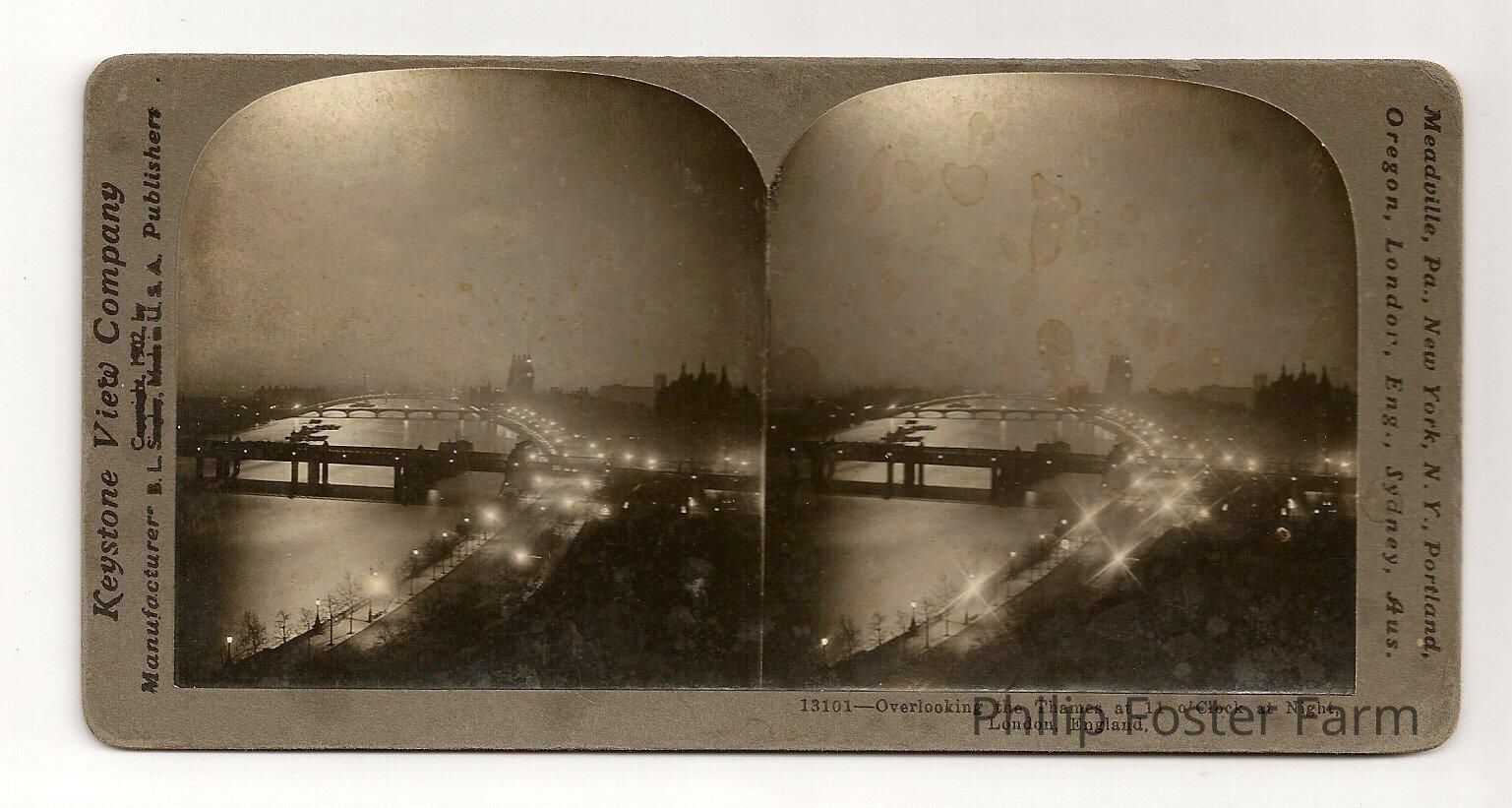 View of Thames and bridges. Detailed description on back. Right has list of major cities. Left: "Keystone View company..." copyright.Collection