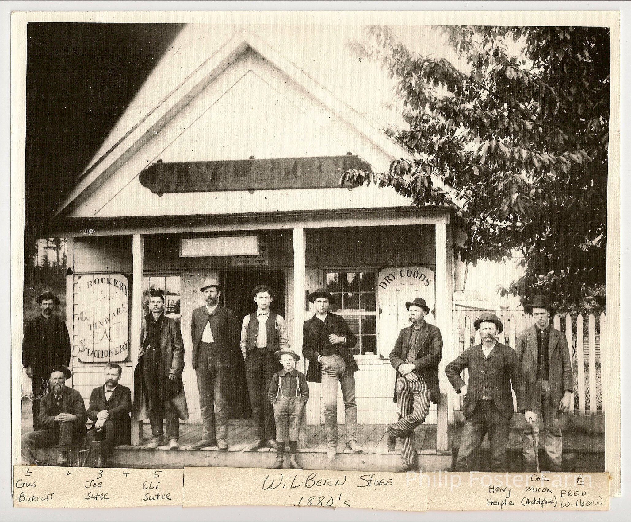 Photo of Wilbern Store from straight on porch, probably taken about same time as 2008.008.007. Front signage very clear.