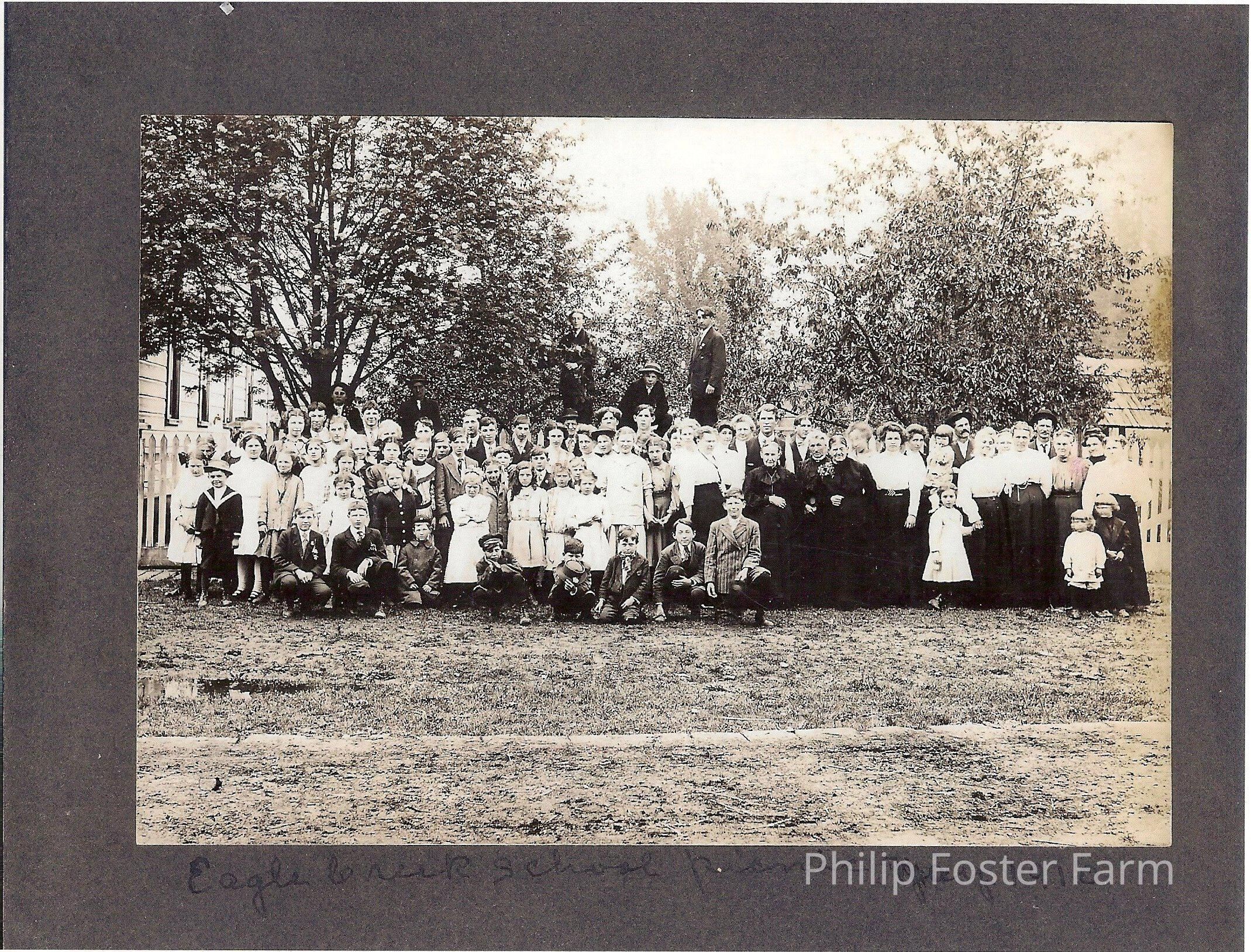 Eagle Creek School picnic in May 1910 at the Philip Foster Farm.