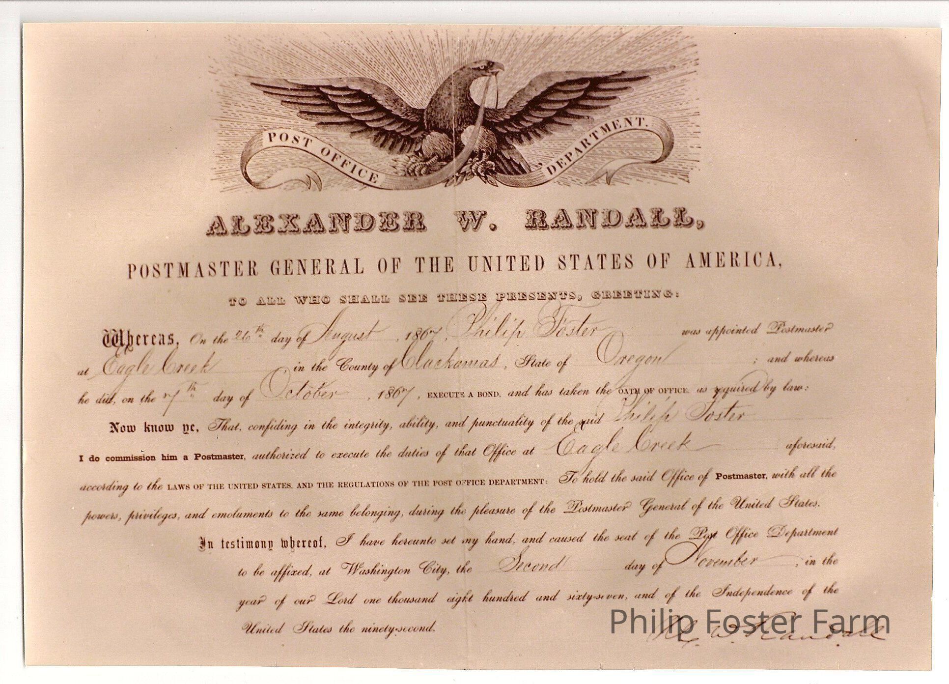Whereas, On the 26th day of August, 1867, Philip Foster was appointed Postmaster