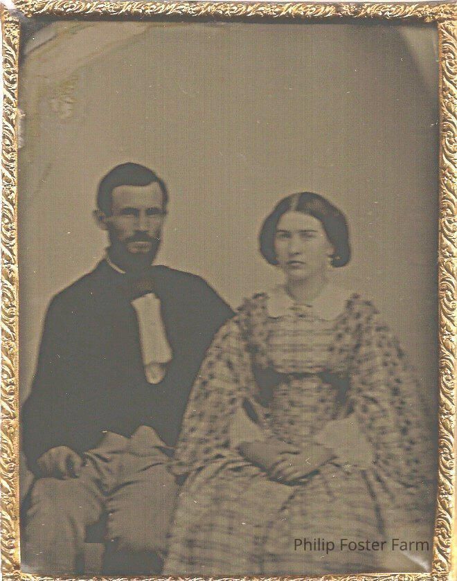 Wedding picture of Josiah and Lucy Burnett Dec 26 1857. 3 1/4" x 4 3/8" in gold metal frame. Probably a tintype developed in 1853.