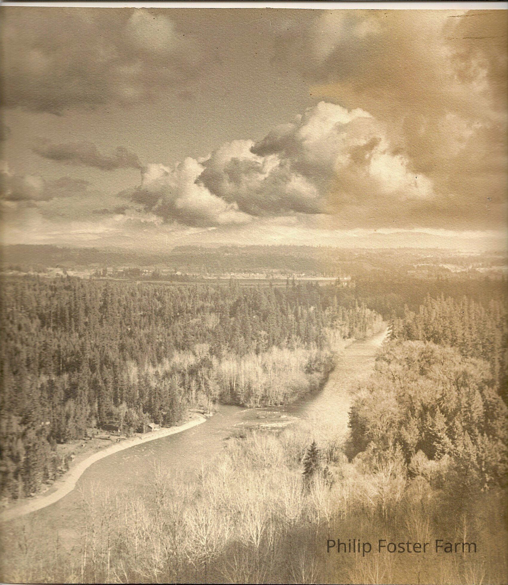 Photograph (copy?) of Clackamas River below River (sp?) Mill Dam. Dated 1940.