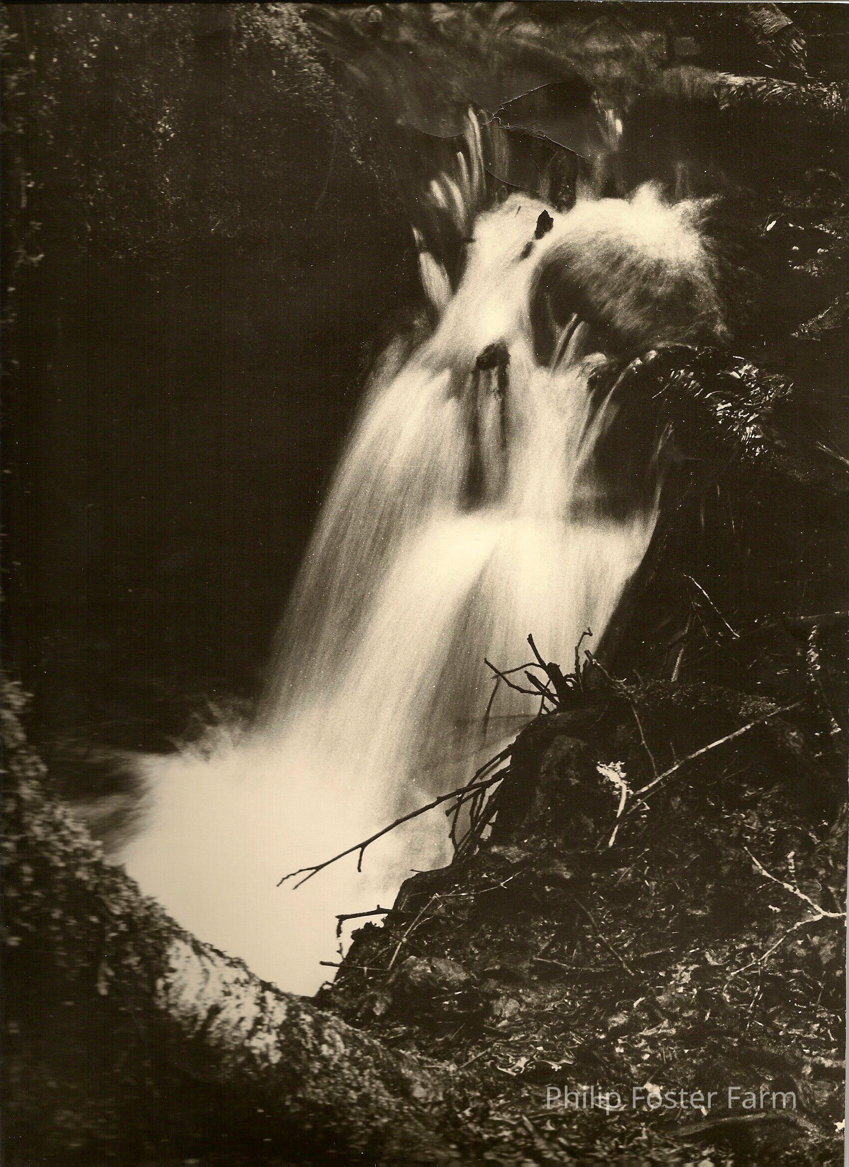 Photograph of Springwater Falls emptying into Estacada Lake. Photographer Joel Johnson, 1970. COPY.