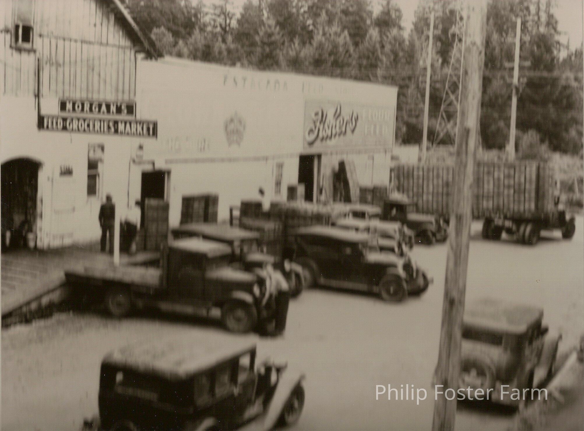 Photograph from Ed F. Boner (COPY of the original). Caption reads: Morgan's Feed Store - built in early 1900's torn down 1970. Berries, ginseng, dried fruit and crops of all kinds were brought here to be shipped by train to Portland. The ginseng went to China.Collection