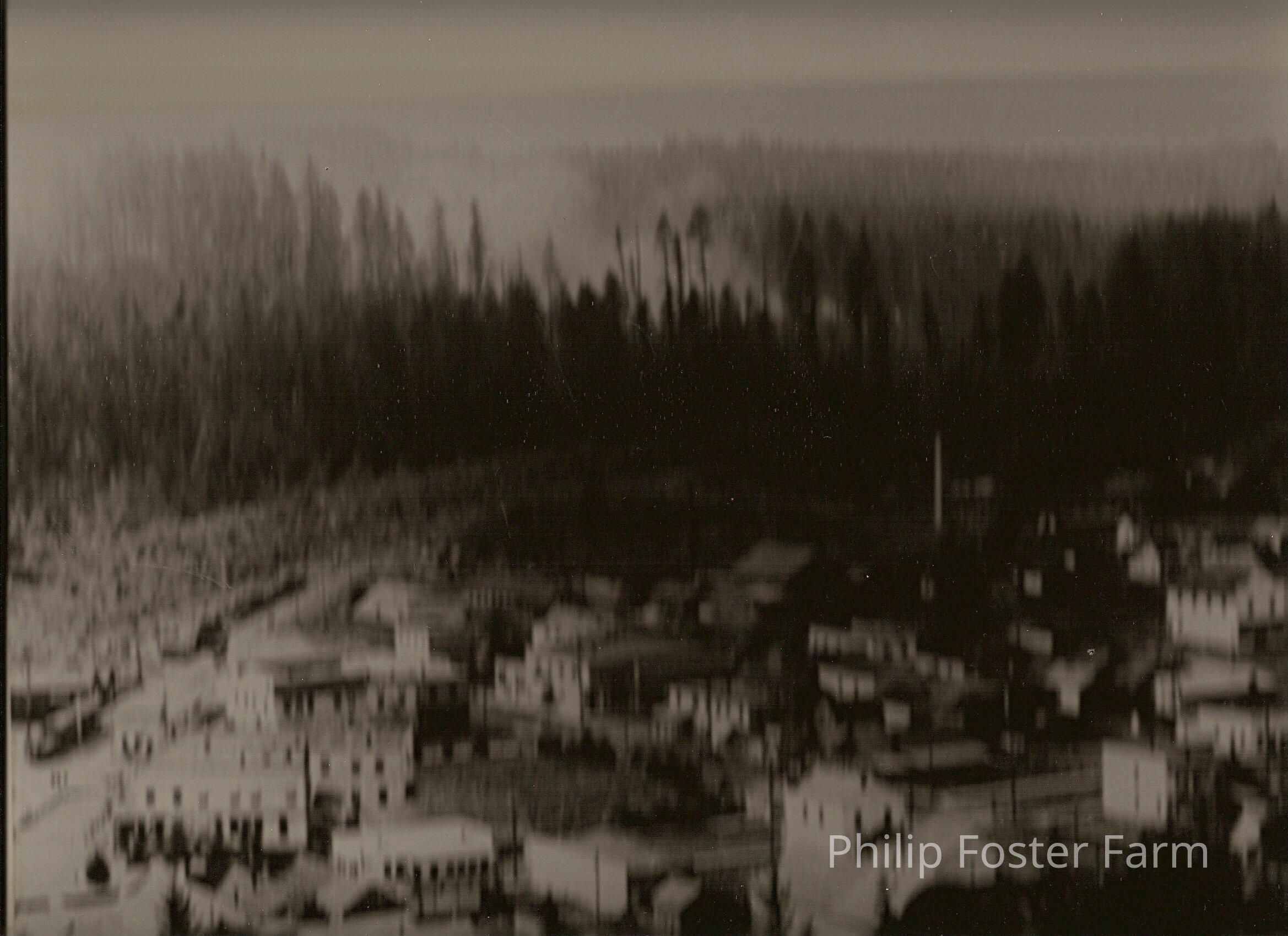 Photograph: view of Estacada looking west, 1910-1927. COPY of the original photograph. Features railroad station, Estacada Hotel, saw mill, dairy and brickworks skirting the city. Ed F. Boner.Collection