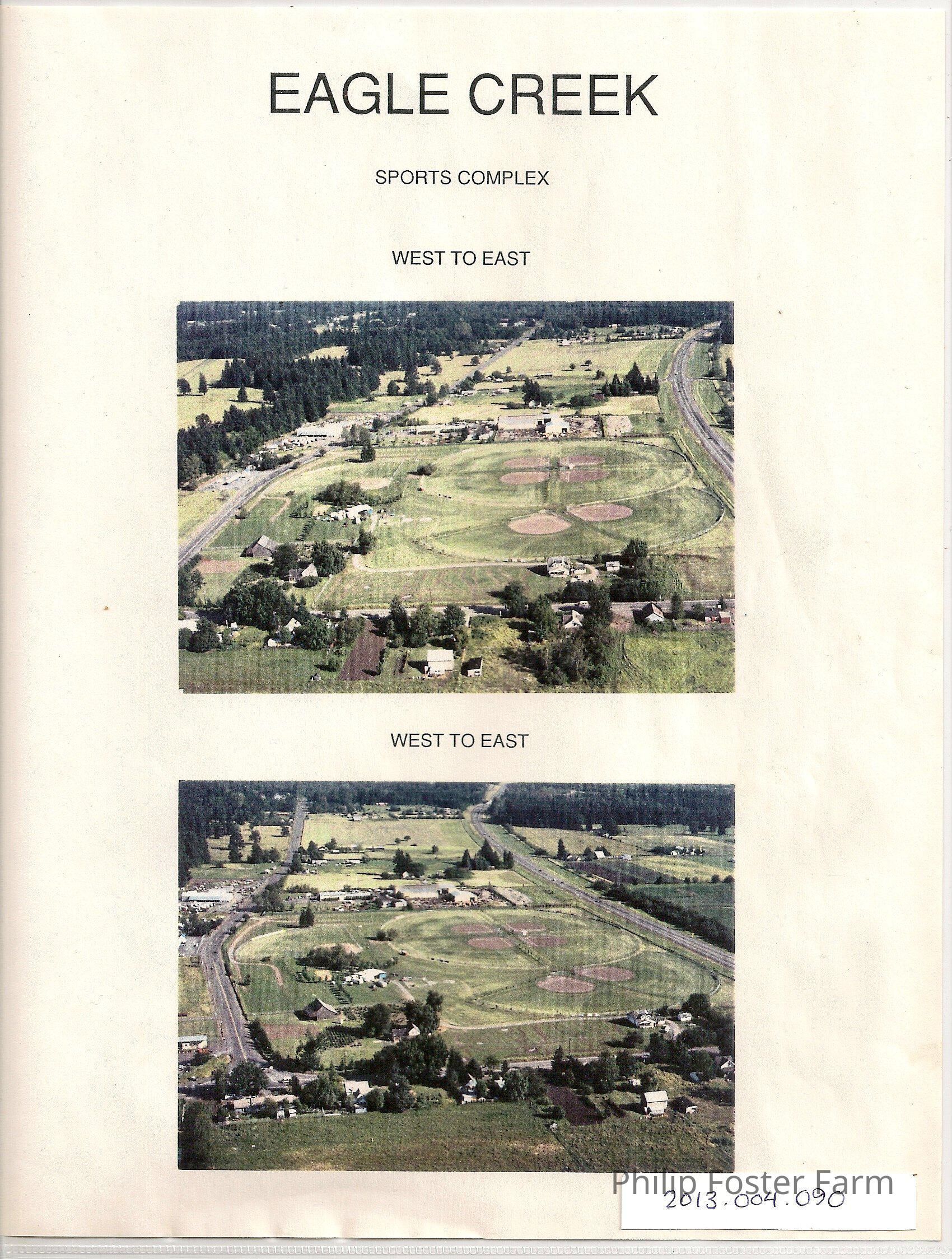Photographs of Eagle Creek school sports complex from above, west to east. Two versionsof photograph, similar location.