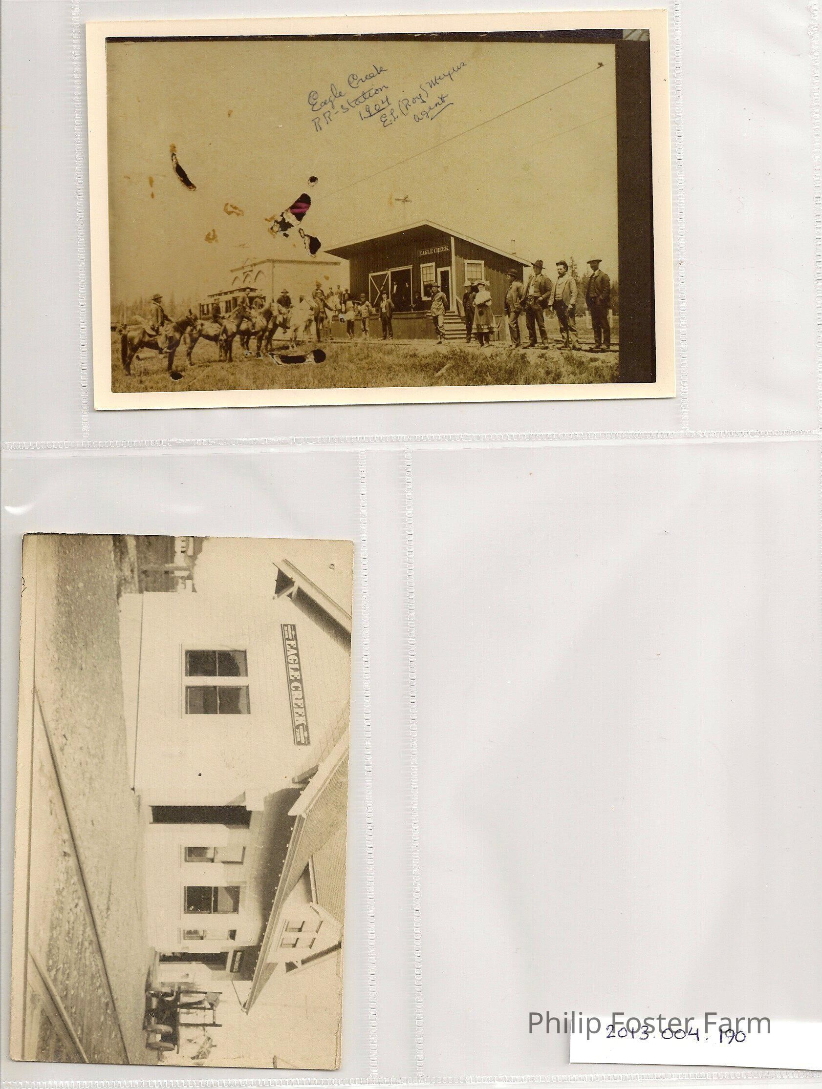 Photographs of the Eagle Creek Railroad Station, one is a reproduction photograph, the other unknown (postcard). The reproduction is a photograph of a 1904 photograph. The other is a non-dated postcard.Collection