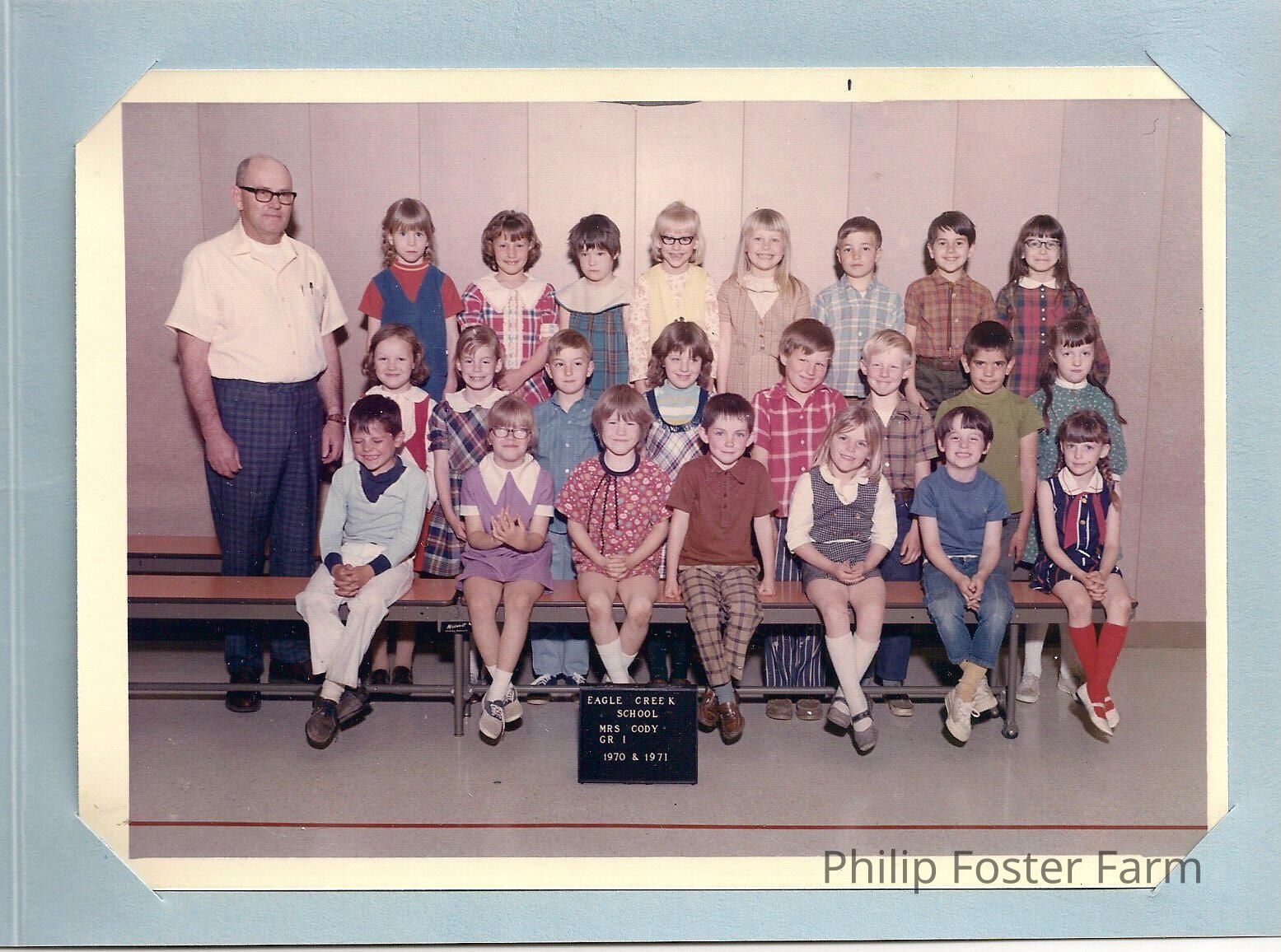 Eagle Creek School class picture. Mrs. Cody's first grade class 1970-1971 (with stand-in teacher... principle or subsitute?).