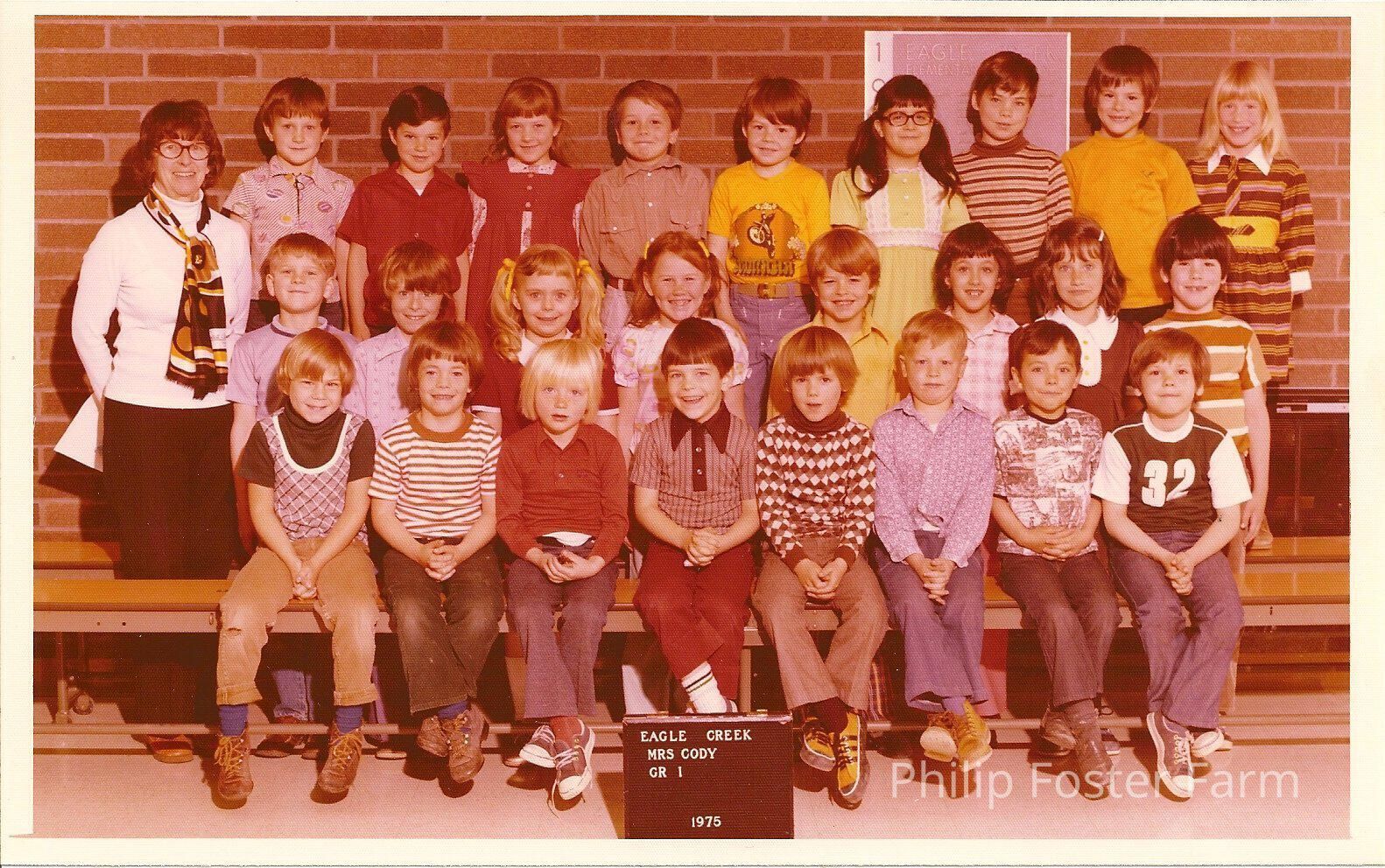 Eagle Creek School class picture. Mrs. Cody's first grade, 1975. Two copies.