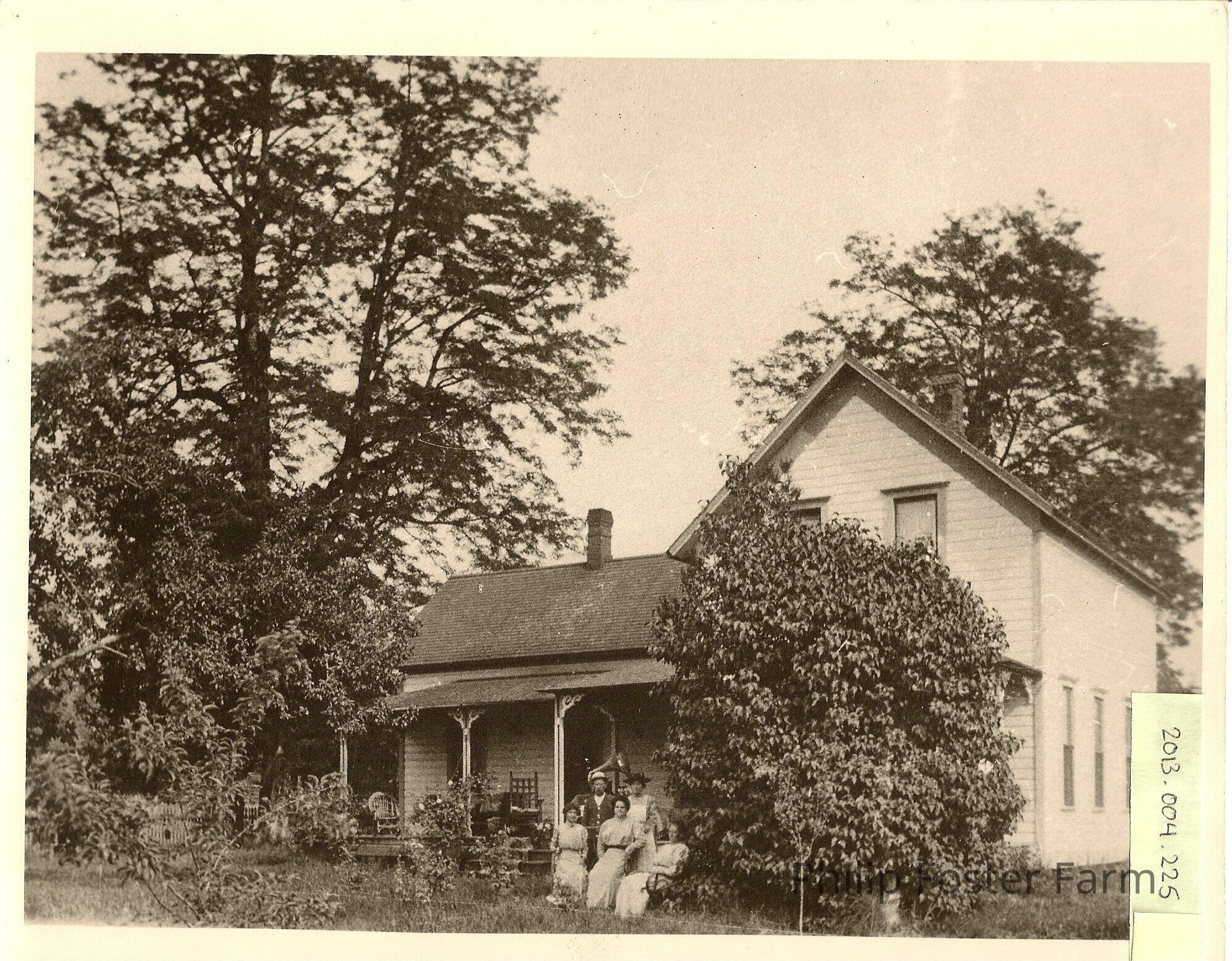 Reprints (ca. 1980) of older photographs (ca. 1890?). Both of the front of the Foster Farm house. One includes the family sitting next to the lilac.