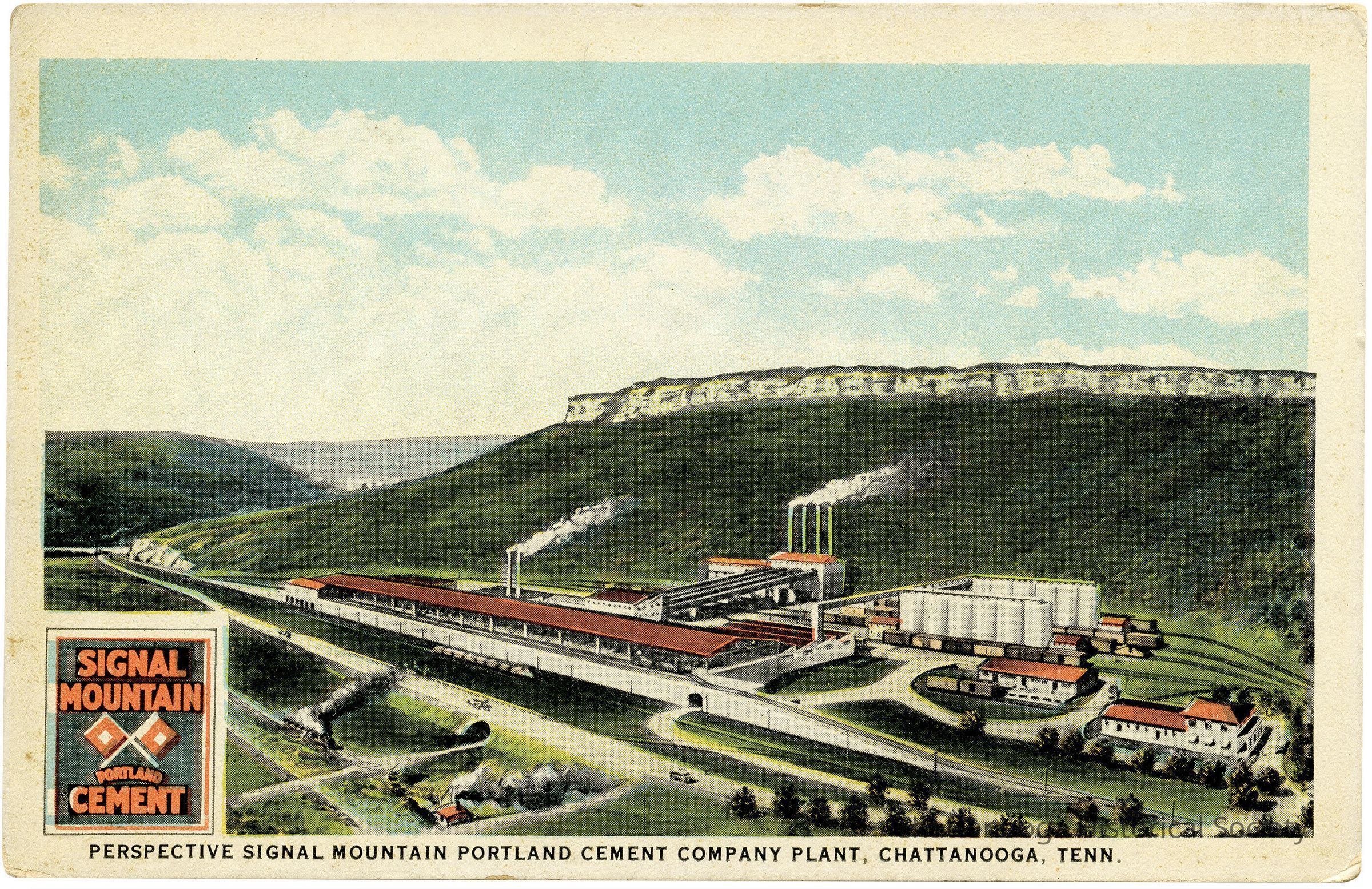 A postcard with the front showing a photograph of the Signal Mountain Portland Cement Company, located near Chattanooga, Tennessee.Subject Person/Organization