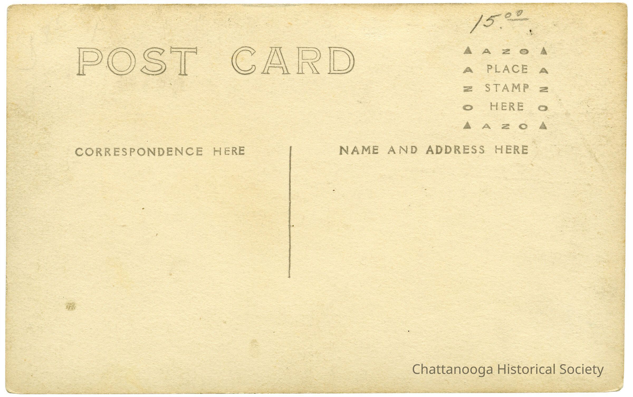 $15.00 written on back may be a later addition of a price when the card was sold.Copyright